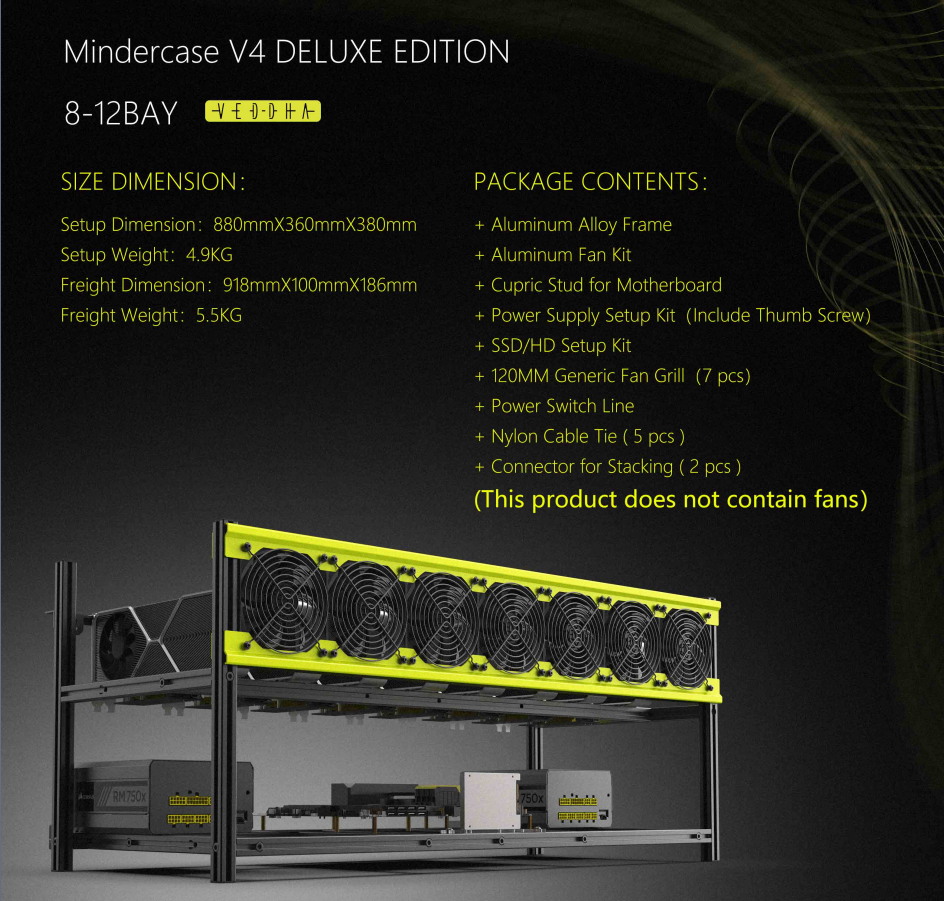 minercase 維達豪華版支援8到12張顯示卡8-12GPU機殼堆疊多顯示卡全鋁主機殼平台維達挖礦礦機殼或是機器運算平台機架等等使用ETH/ETC/BTC/WBTC/Cash平台/安裝最長34CM顯卡/支持AMD與NVIDIA