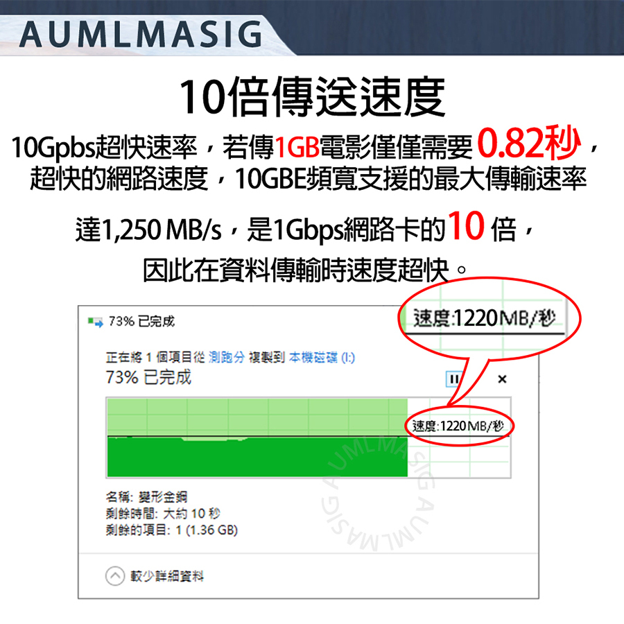傳輸速度: 支援 10Gbps、5Gbps、2.5Gbps、1Gbps、100Mbps 的傳輸速率