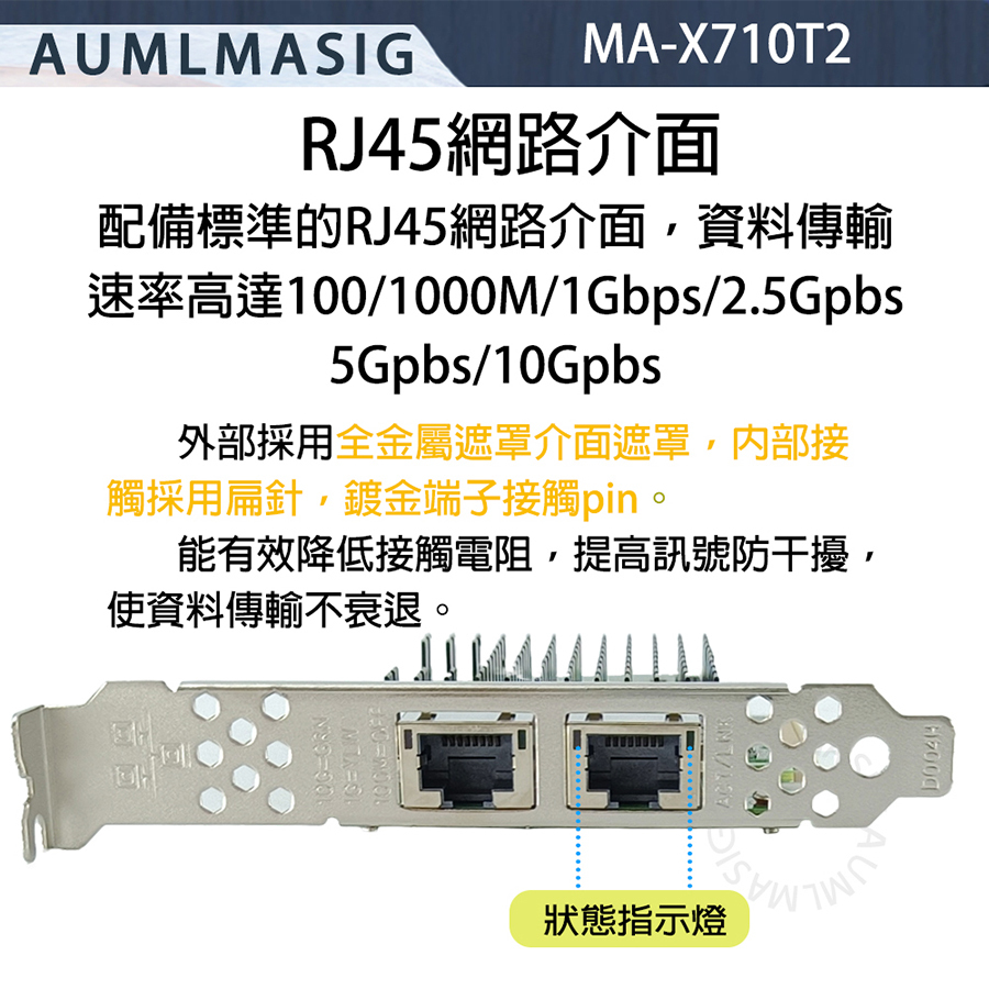 連接介面: RJ-45,支援標準銅纜(Cat6、Cat6a 或 Cat5e)