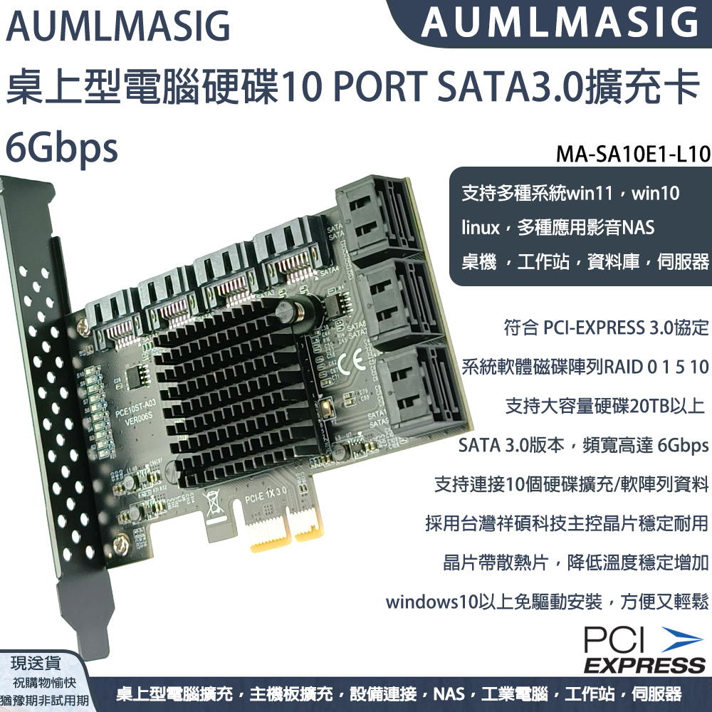 產品名稱: AUMLMASIG 10 Port SATA 3.0 Expansion Card