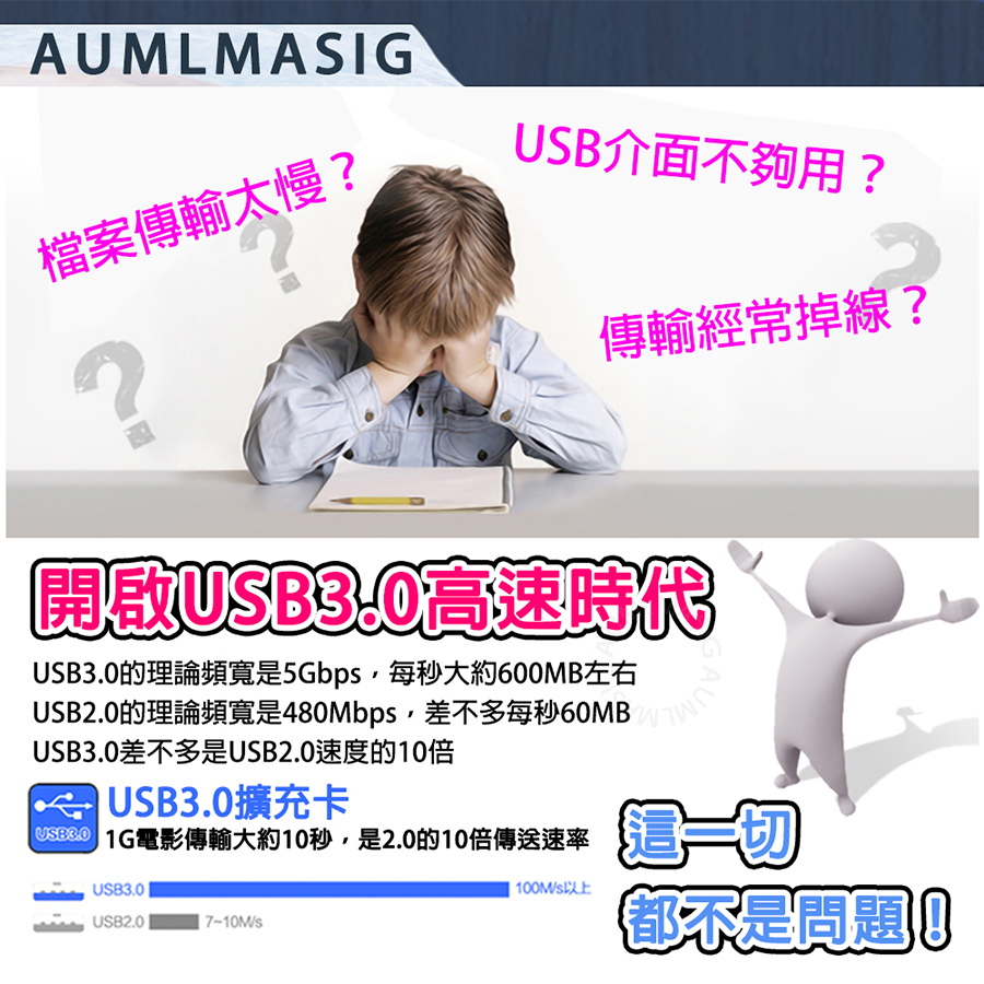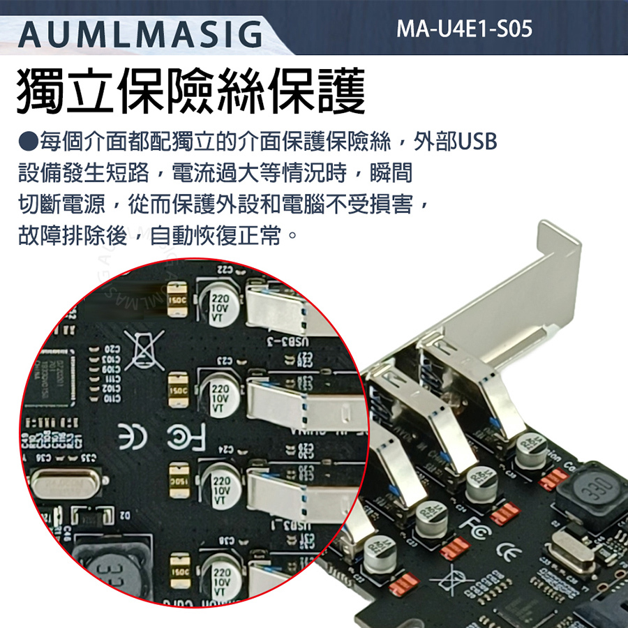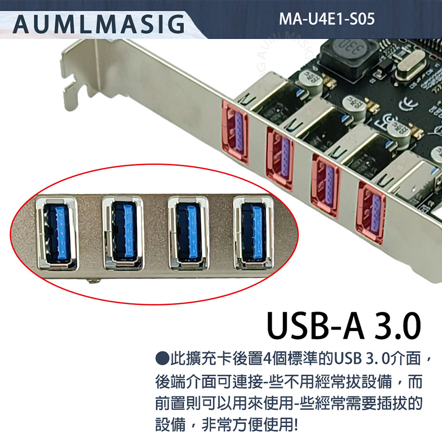AUMLMASIG 桌上型電腦USB3.2 GEN1 4 PORT 擴充轉換卡