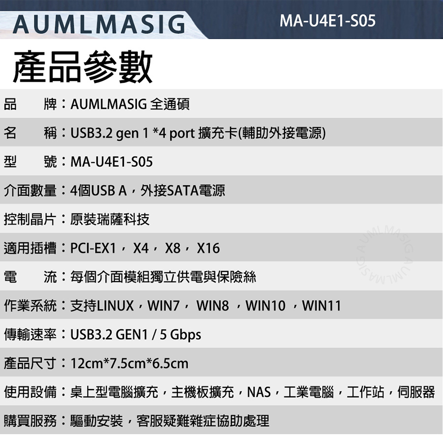 AUMLMASIG  桌上型電腦USB3.2 GEN1 4 PORT 擴充轉換卡