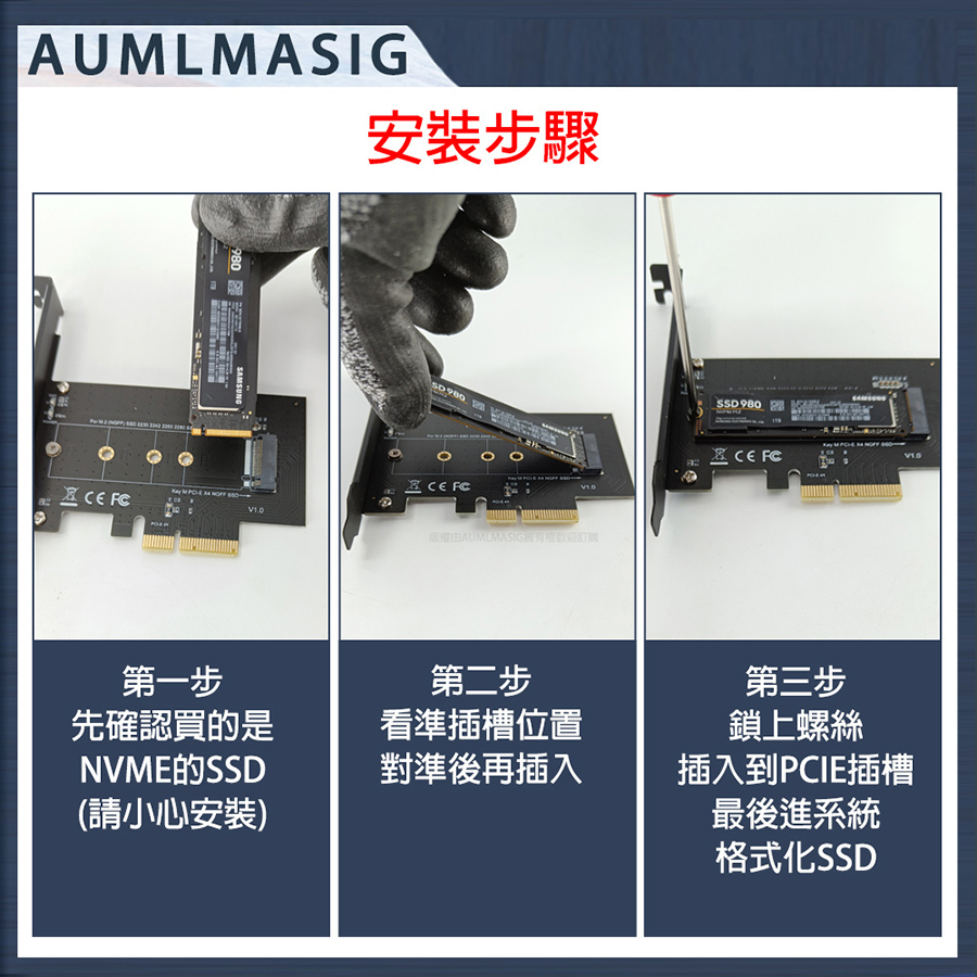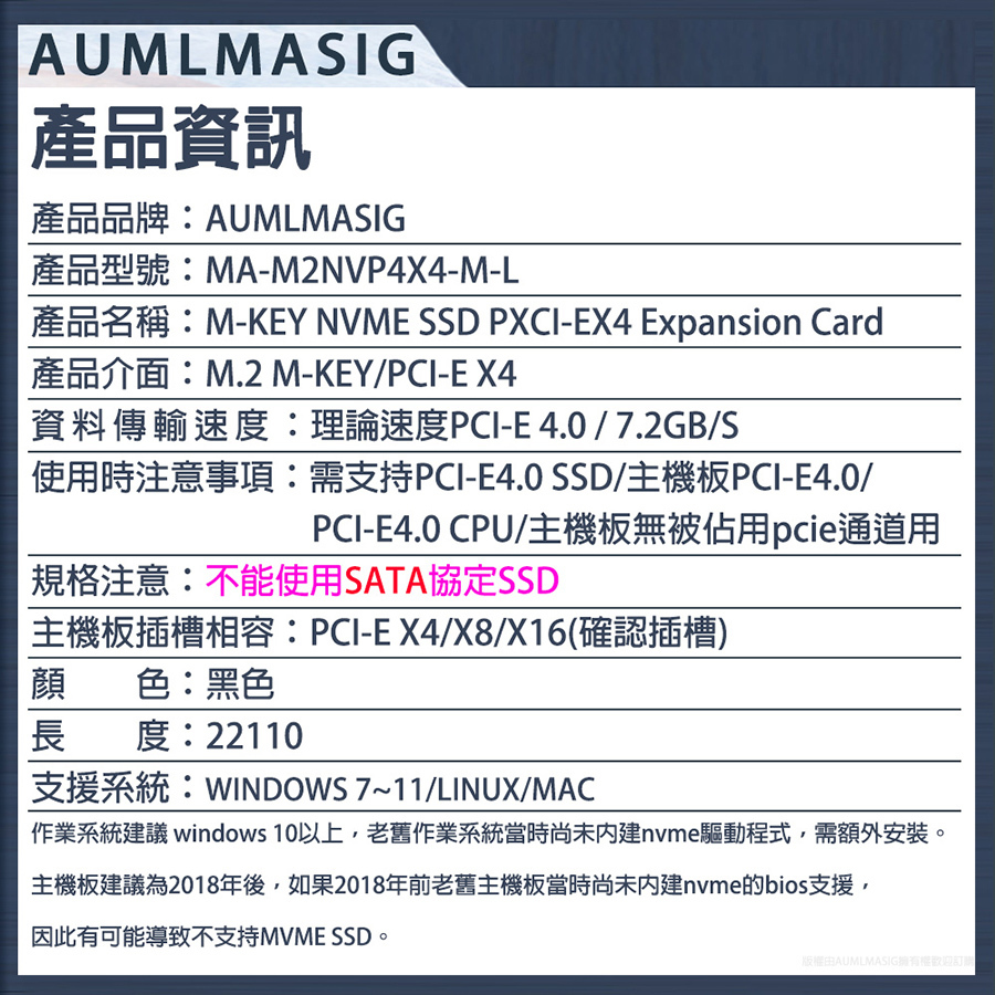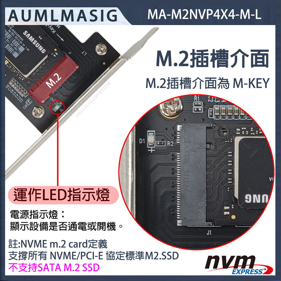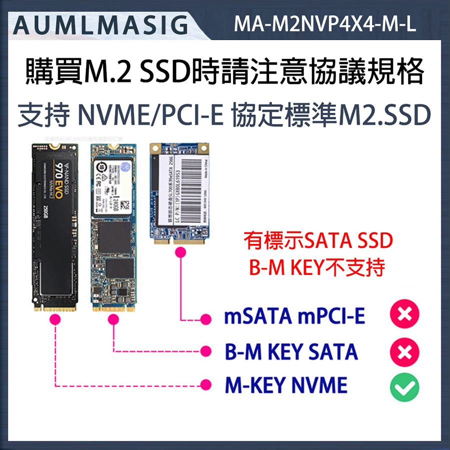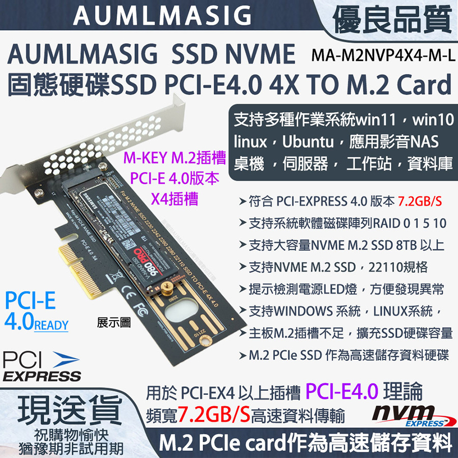 AUMLMASIG M-KEY NVME SSD PXCI-EX4 Expansion Card