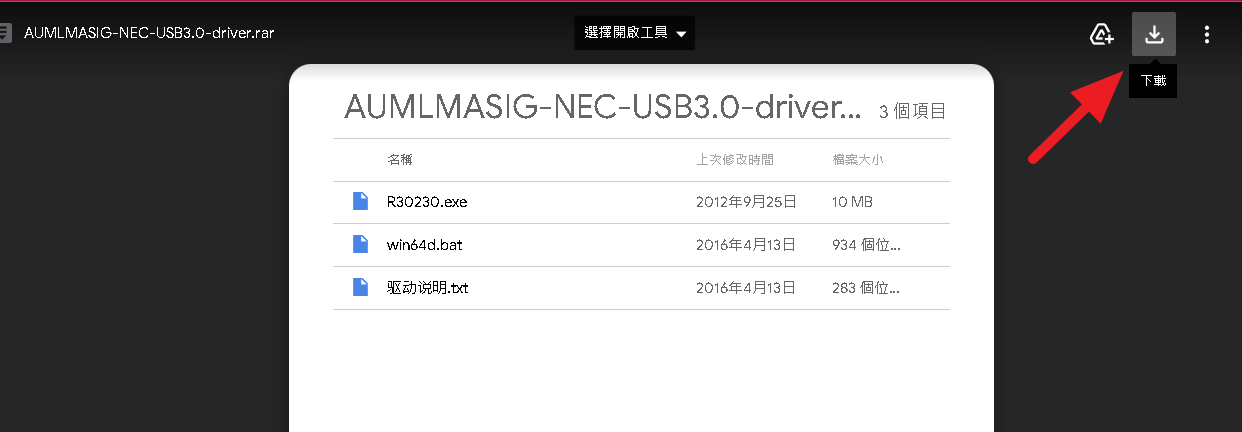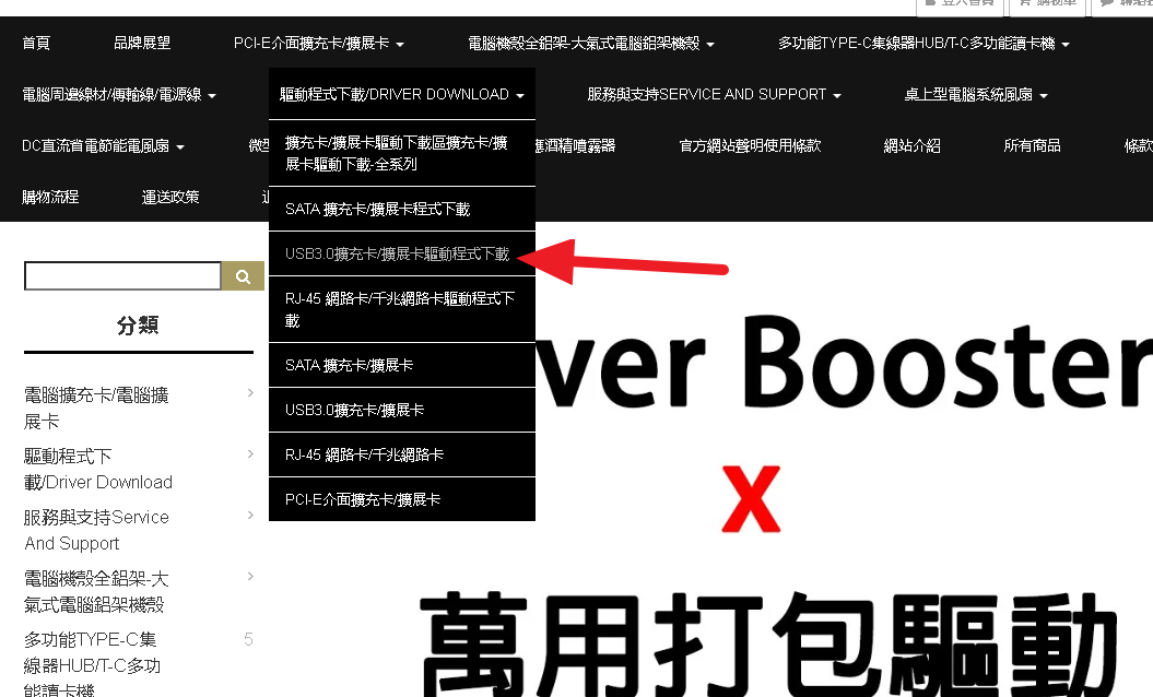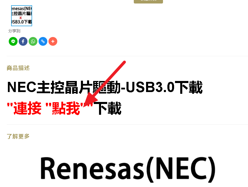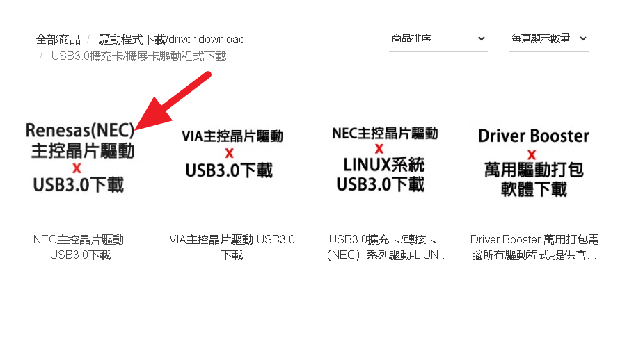 2,電腦端輸入網址:www.aumlmasig.com 選擇》驅動程式下載》USB3.0驅動程式》USB3.0(RENESASNEC)下載