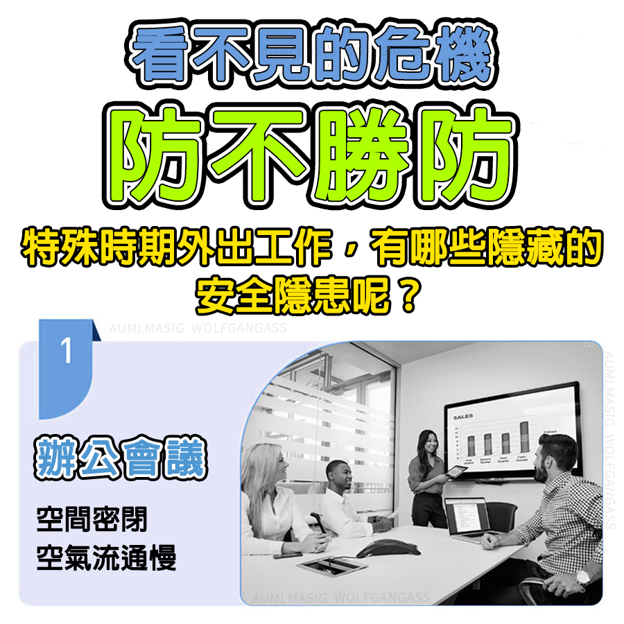 辦公會議 空間密閉,空氣流通慢 人員複雜,傳播快