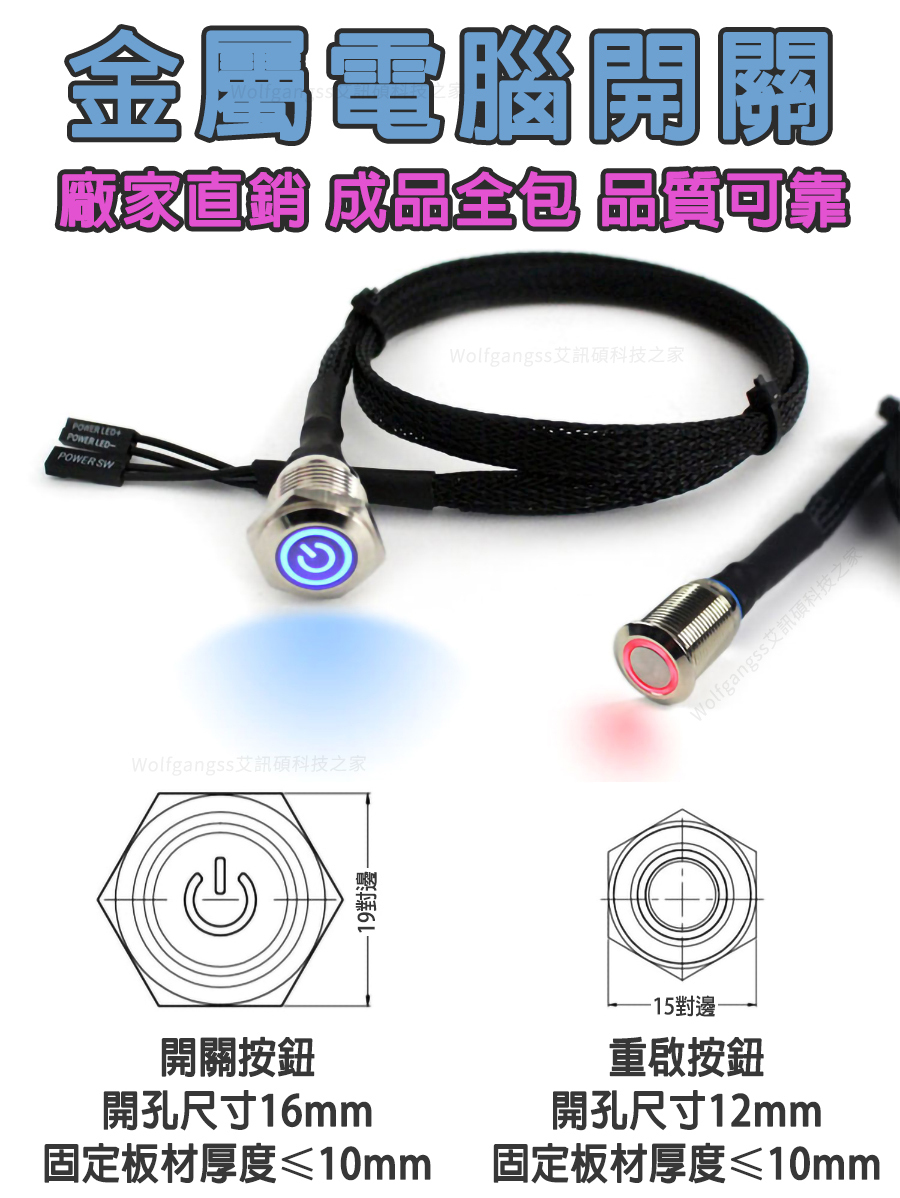 【AUMLMASIG】電腦開機重啟鍵 金屬帶燈按鈕電源開關 主機板延長主機殼外置線