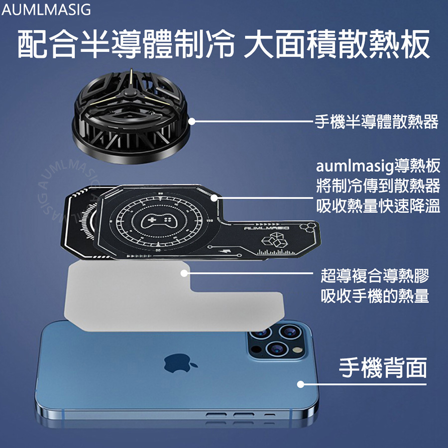 【AUMLMASIG】手機快降溫磁吸導熱主板 通用於各大品牌手機與平板 增加傳導面積 加速散熱速度 手機/平板電腦使用 降溫手機導熱鋁合金主板 適配背夾與磁吸散熱器 內置引磁吸環與複合材料 採固態導熱膠可重複用 配合手機散熱器效果佳