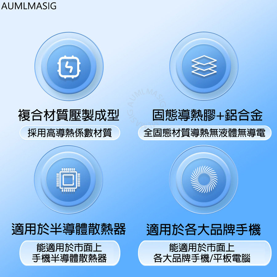 【AUMLMASIG】手機快降溫磁吸導熱主板 通用於各大品牌手機與平板   增加傳導面積 加速散熱速度 手機/平板電腦使用 降溫手機導熱鋁合金主板 適配背夾與磁吸散熱器 內置引磁吸環與複合材料 採固態導熱膠可重複用 配合手機散熱器效果佳