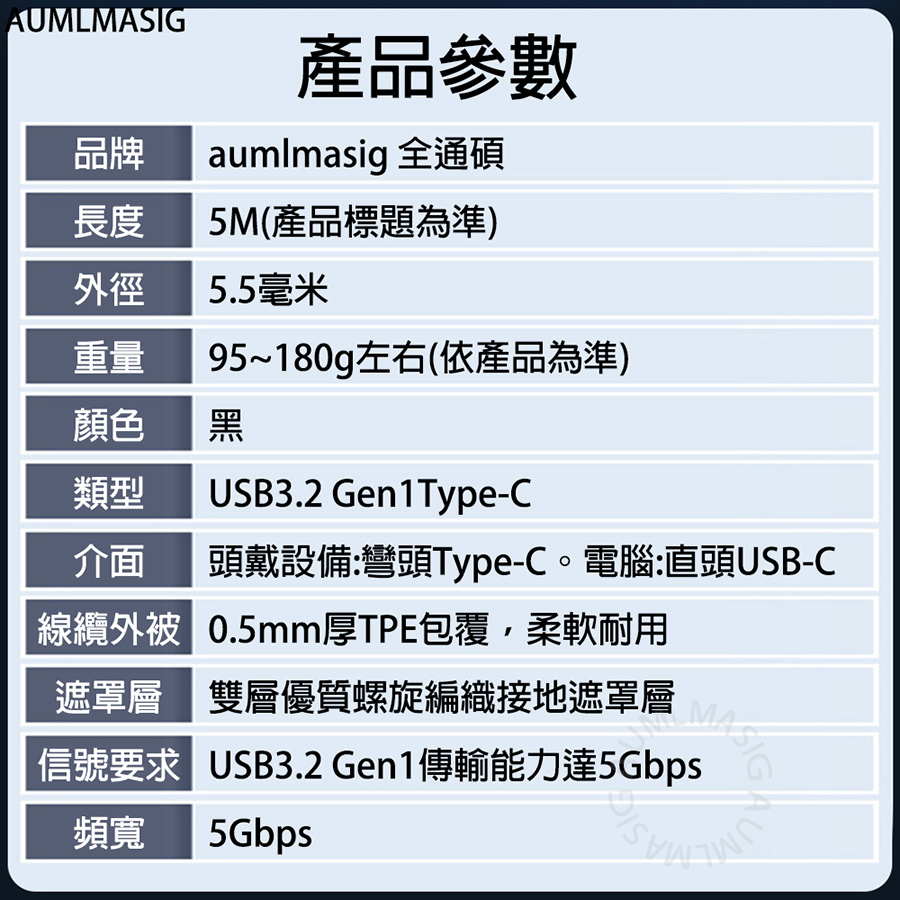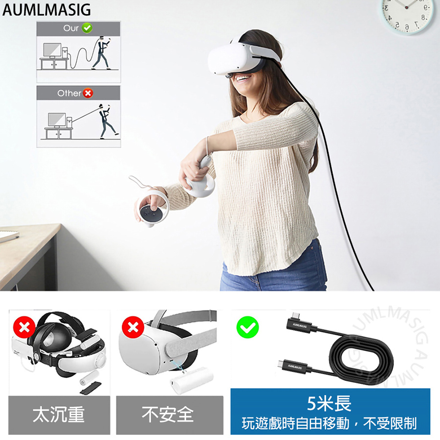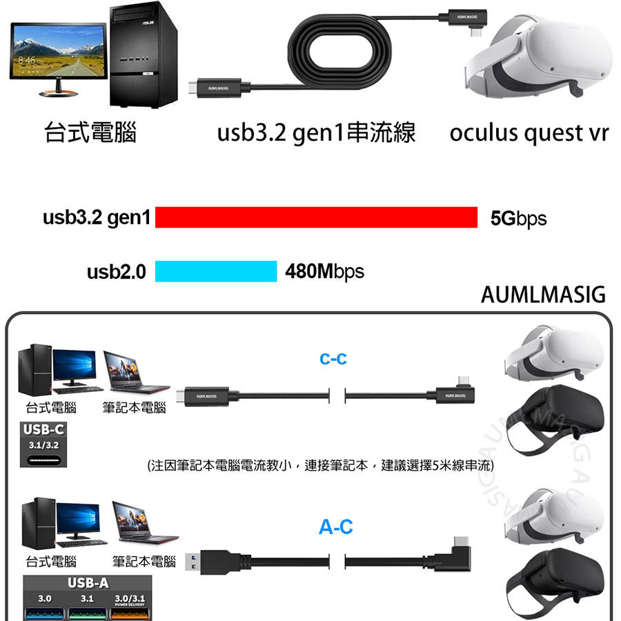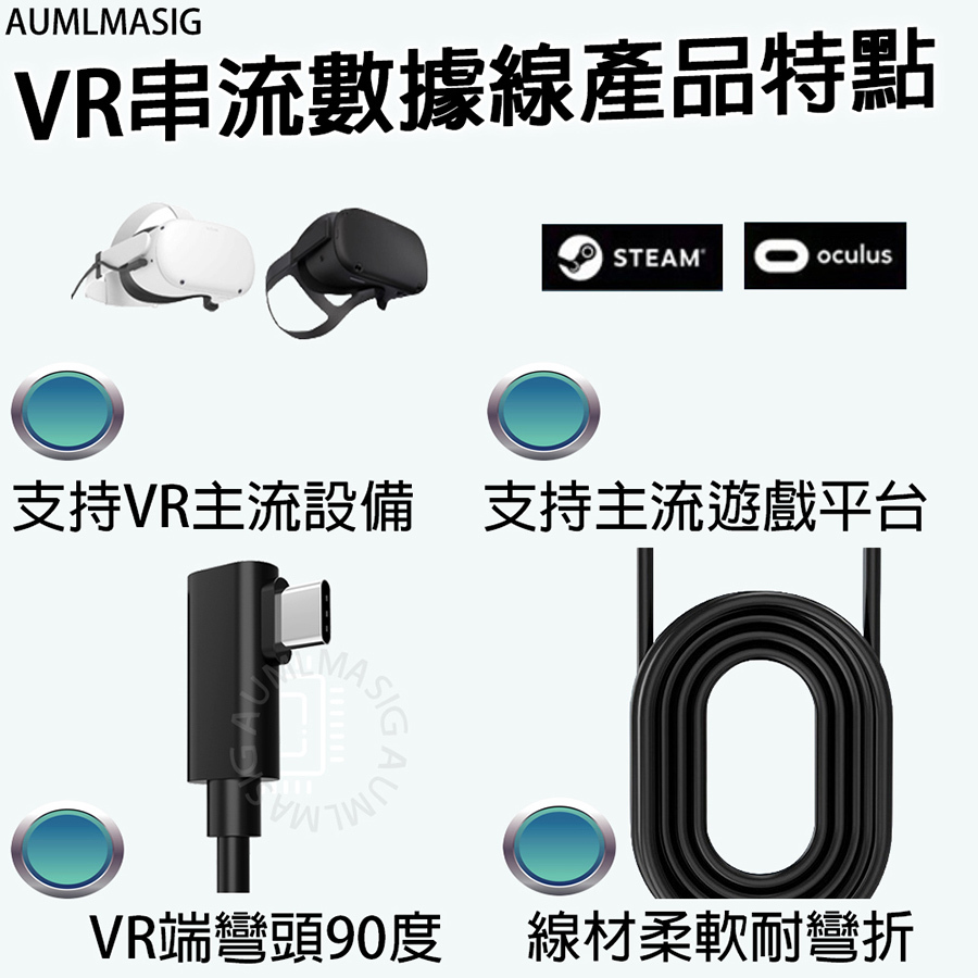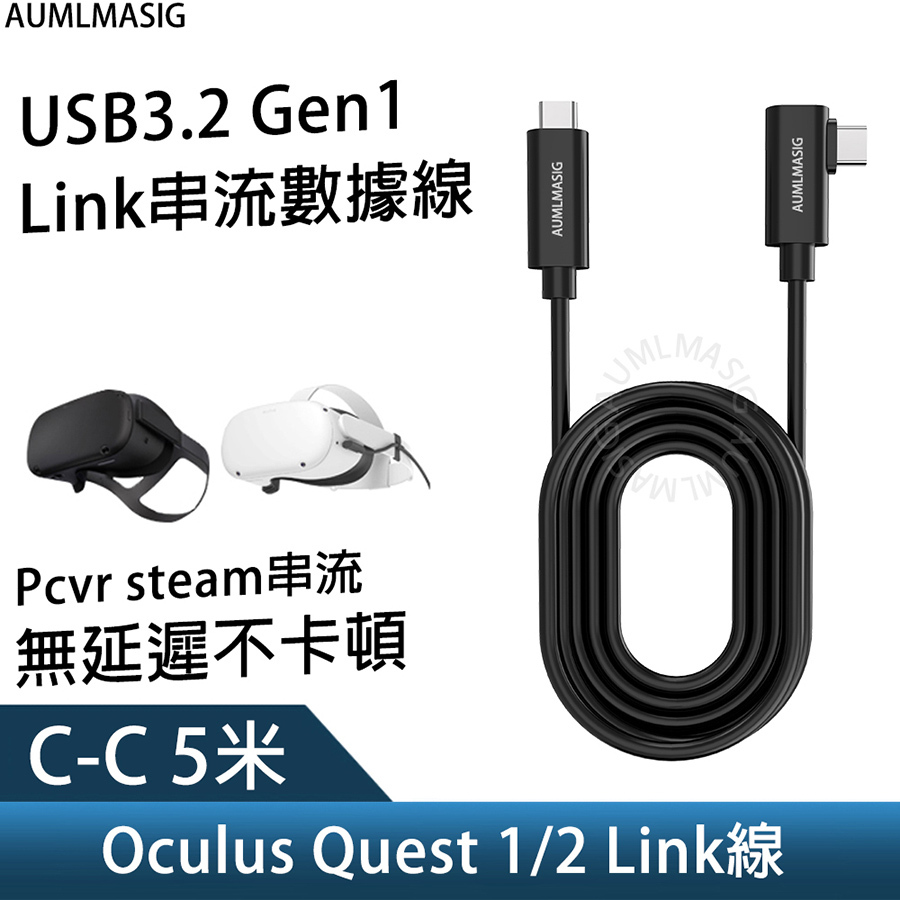 AUMLMASIG VR USB3.2 Gen1 C-C數據線 適用於 VR設備 / Oculus Quest VR Link 高速傳輸充電串流數據線 支持主流VR設備 VR遊戲暢玩無線 資料傳輸5Gbps 無延遲不卡頓 邊玩邊充不掉線 訊號放大耐用材質