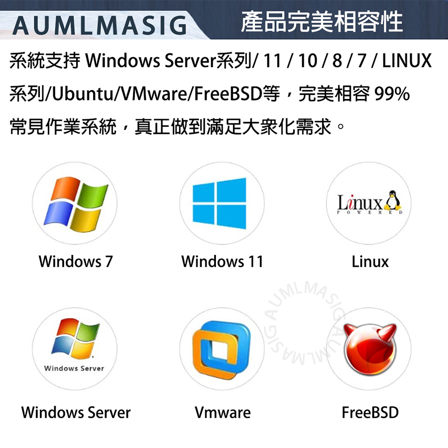 操作系統支援: 支援多種操作系統,包括 Windows、Linux、VMware、FreeBSD 等