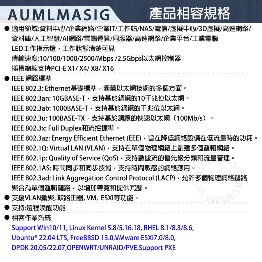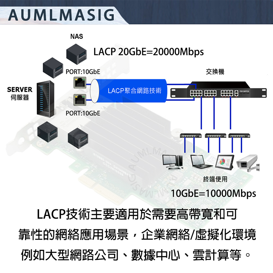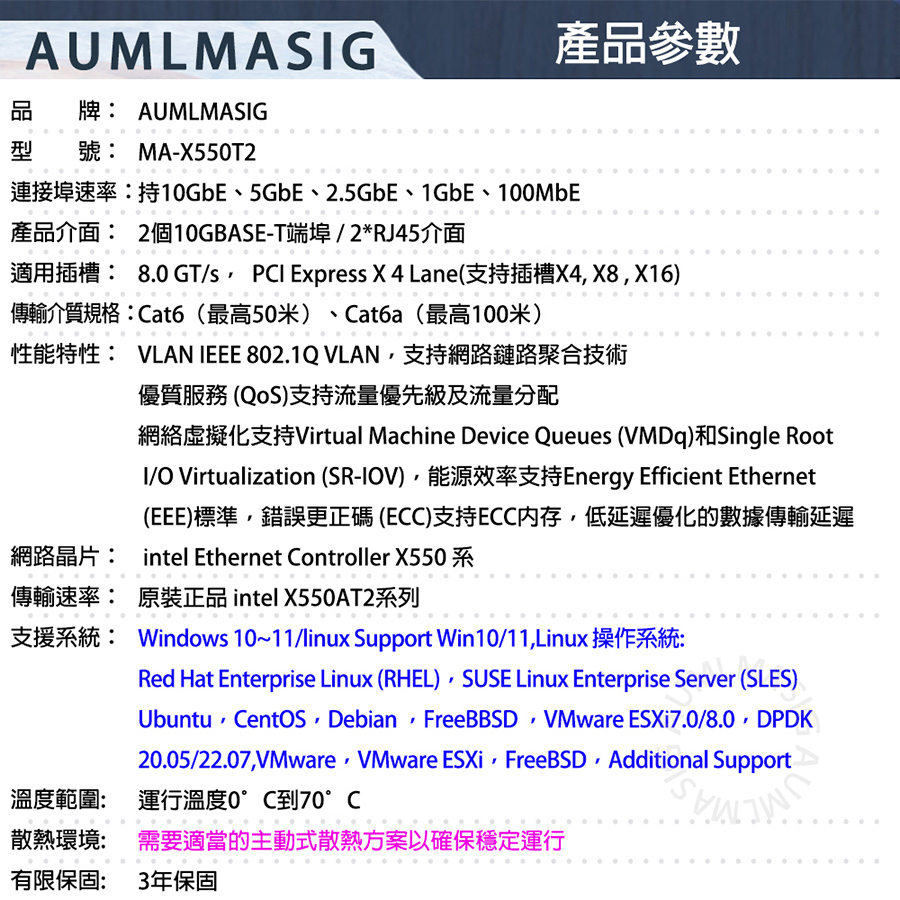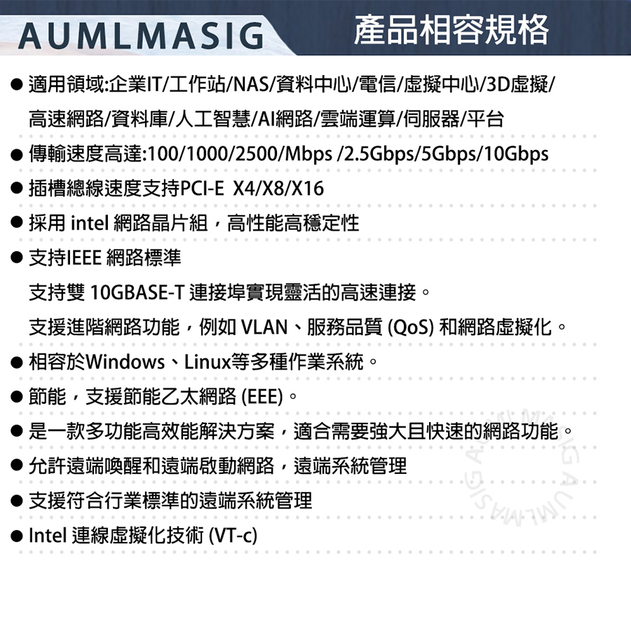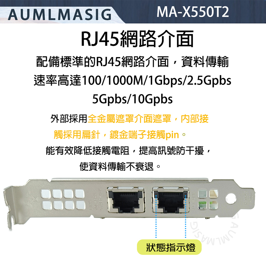 【AUMLMASIG】2 PORT 10 Gbps Ethernet Adapters 10 Gbps 乙太網路聚合網路介面卡 用於windows server/LINUX/Vmware 2PORT RJ-45插槽 適用:企業IT/工作站/NAS/資料中心/虛擬中心/ 高速網路/資料庫/人工智慧/雲端運算/伺服器
