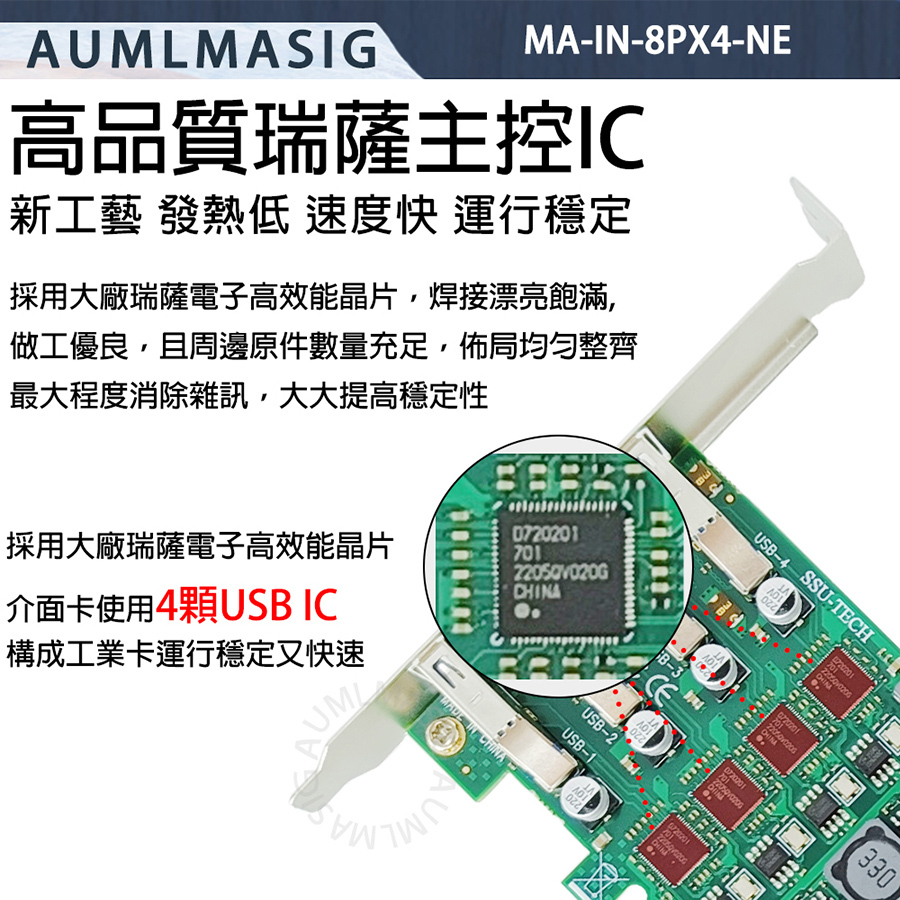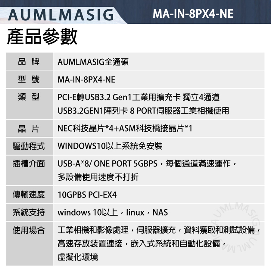 【AUMLMASIG】PCI-E轉USB3.2擴充卡 獨立4通道USB3.2工業卡8PORT伺服器工業鏡頭相機工業用監視器,攝像頭,VR遊戲,工業應用 如工業PC、終端、數據機、印表機、掃描器支持多種操作系統  桌機 ,伺服器, 工作站,資料庫