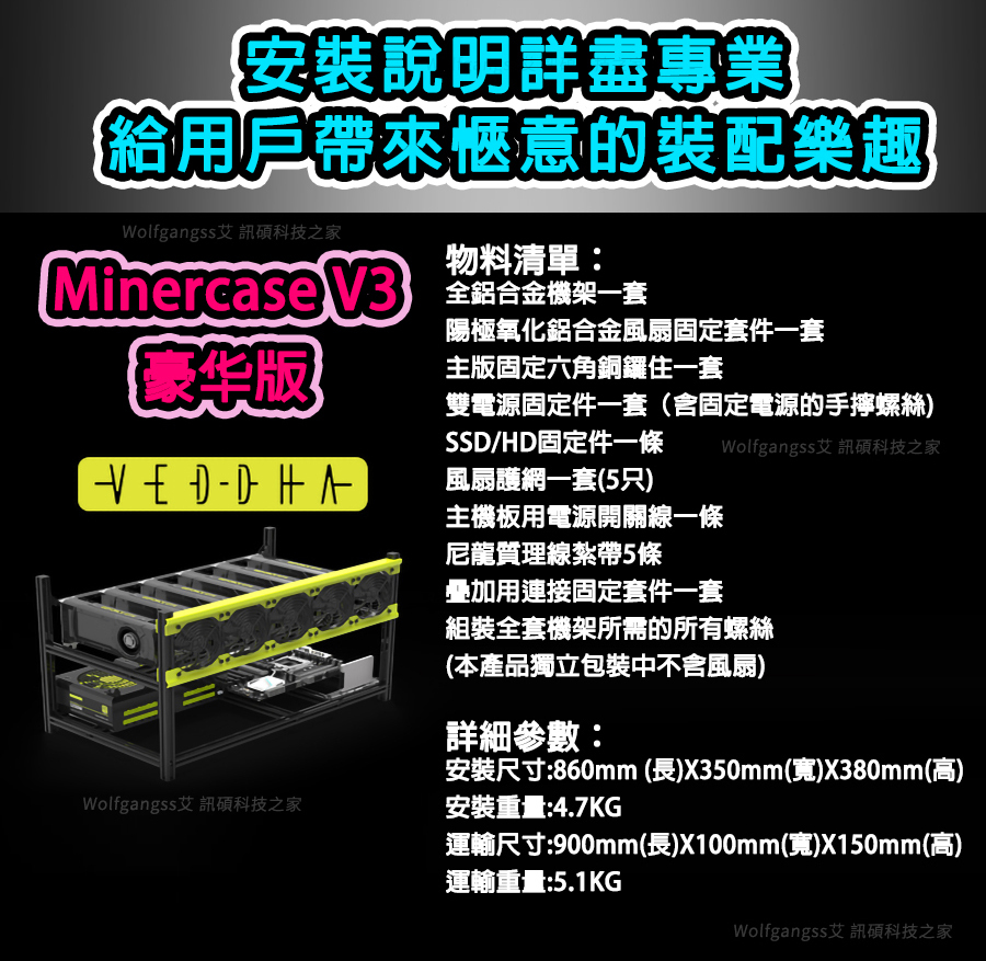 MINERCASE VEDDHA 維達第4代豪華版版 6顯卡機架 多顯卡全鋁合金機架 深度學習主機殼VEDDHA MINERCASE V4D