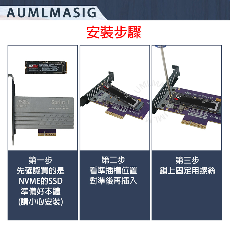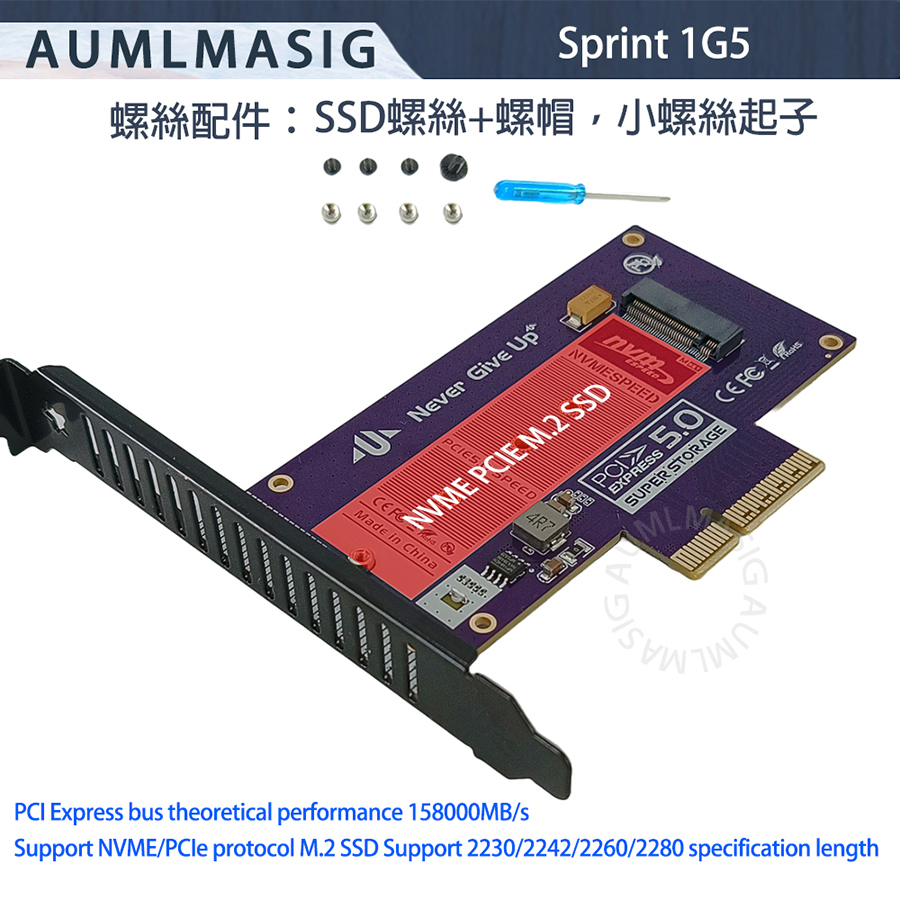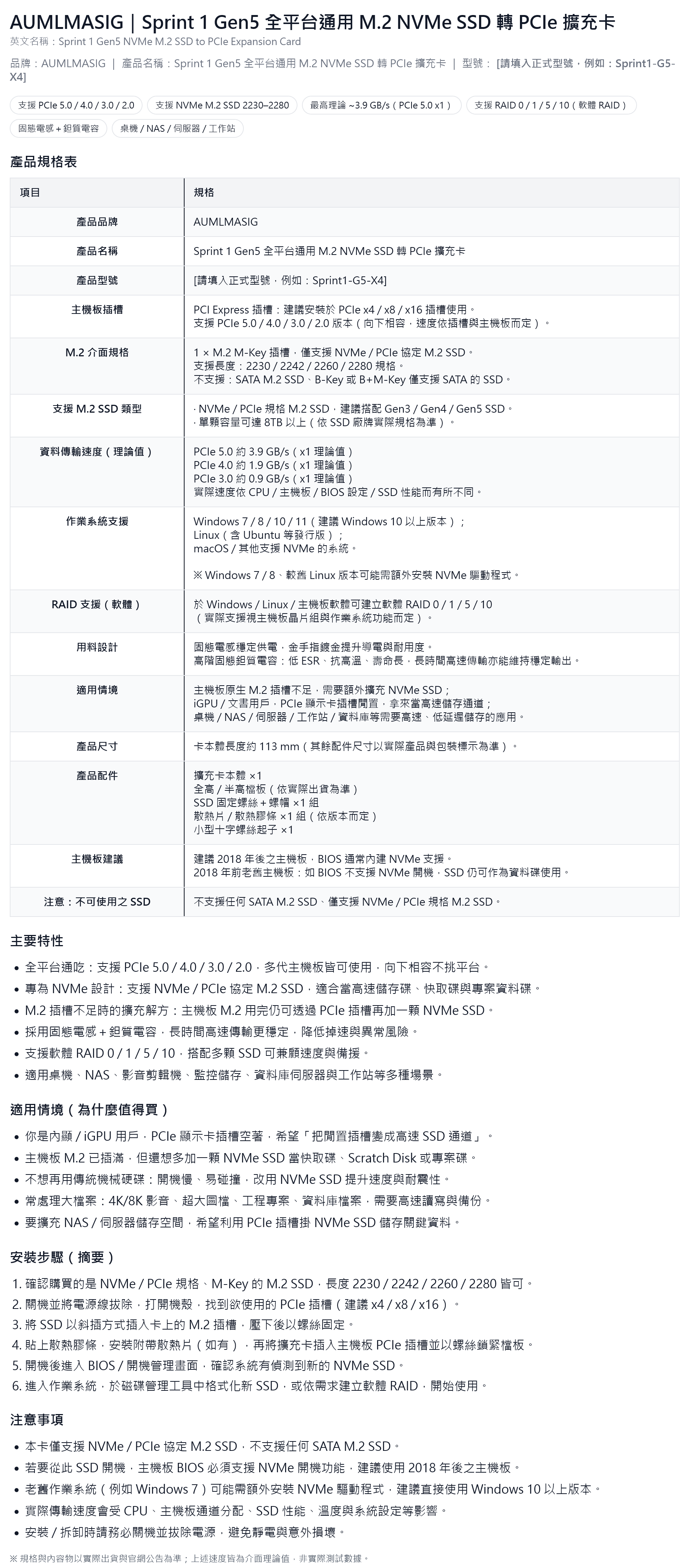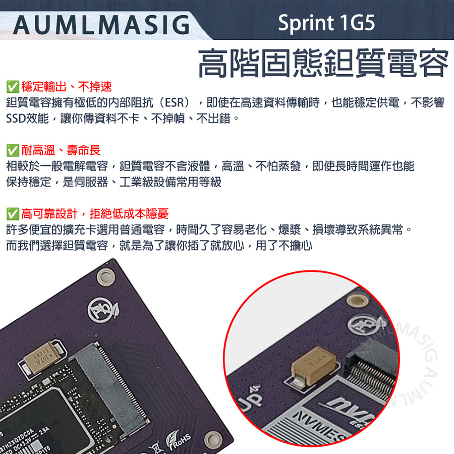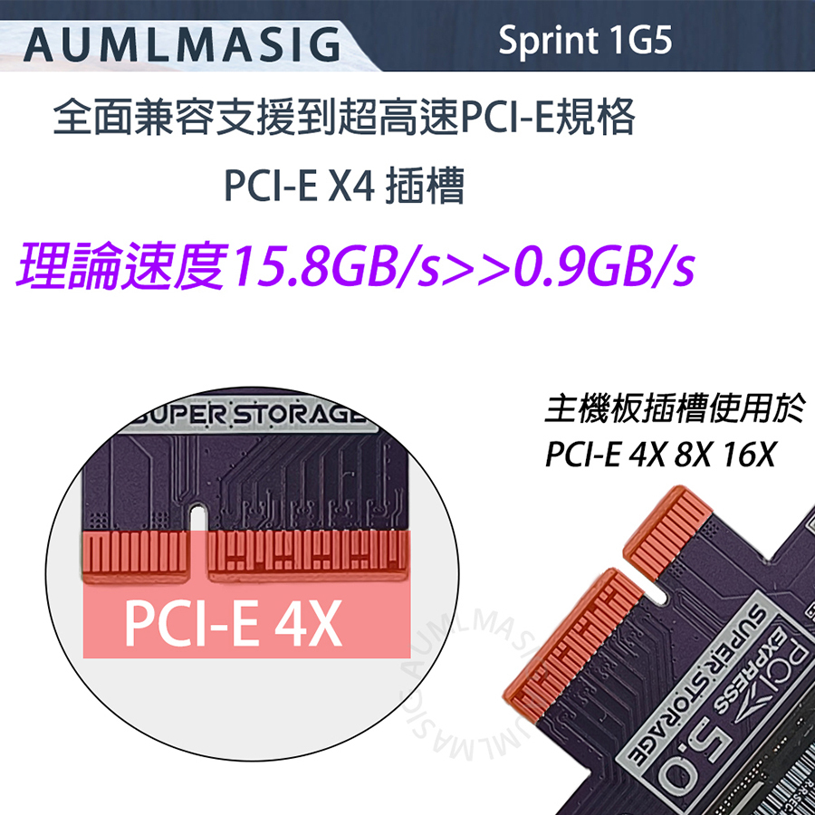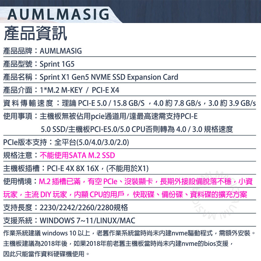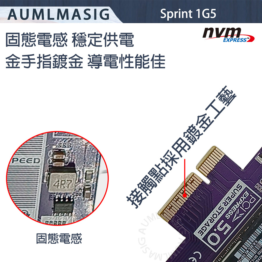 AUMLMASIG|Sprint 1 Gen5 全平台通用 M.2 NVMe SSD 轉 PCIe 擴充卡