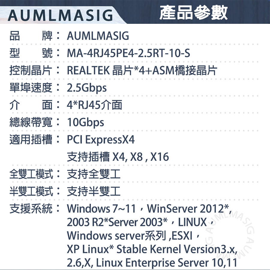 [AUMLMASIG] 4 PORT Ethernet Adapters 4 sets of 2.5 Gbps server network interface cards are suitable for: virtual machines/industrial/servers/routers/AI, 4 sets of RJ-45 slots/2.5Gbps*4 REALTEK network chips Maximum bandwidth 10GBPS,
