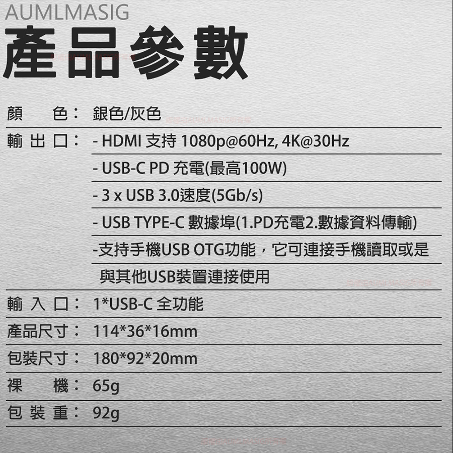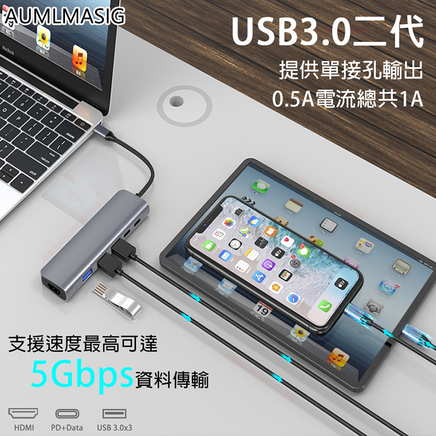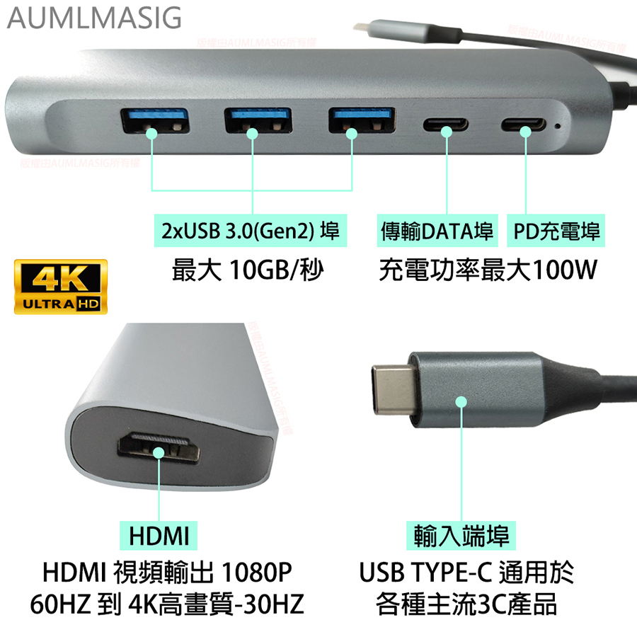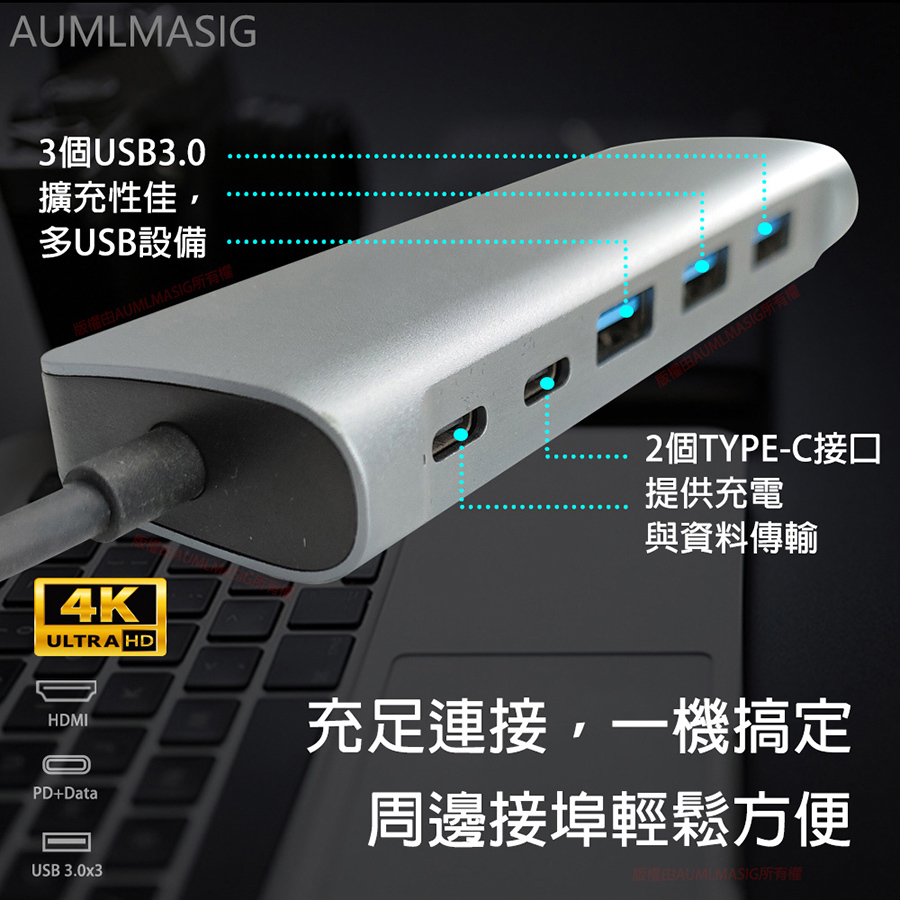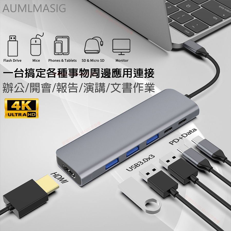 【AUMLMASIG】6合1擴充多功能集線器6in1 HUB 6in1 CONNETOR