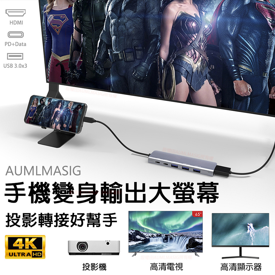 [AUMLMASIG] 6 in 1 expansion multi-function hub 6in1 HUB 6in1 CONNETOR USB expansion + charging + projection HDMI 4K/ 100W /PD /USB3.0/laptop/mobile phone OTG/pen drive/keyboard/mouse/USB device