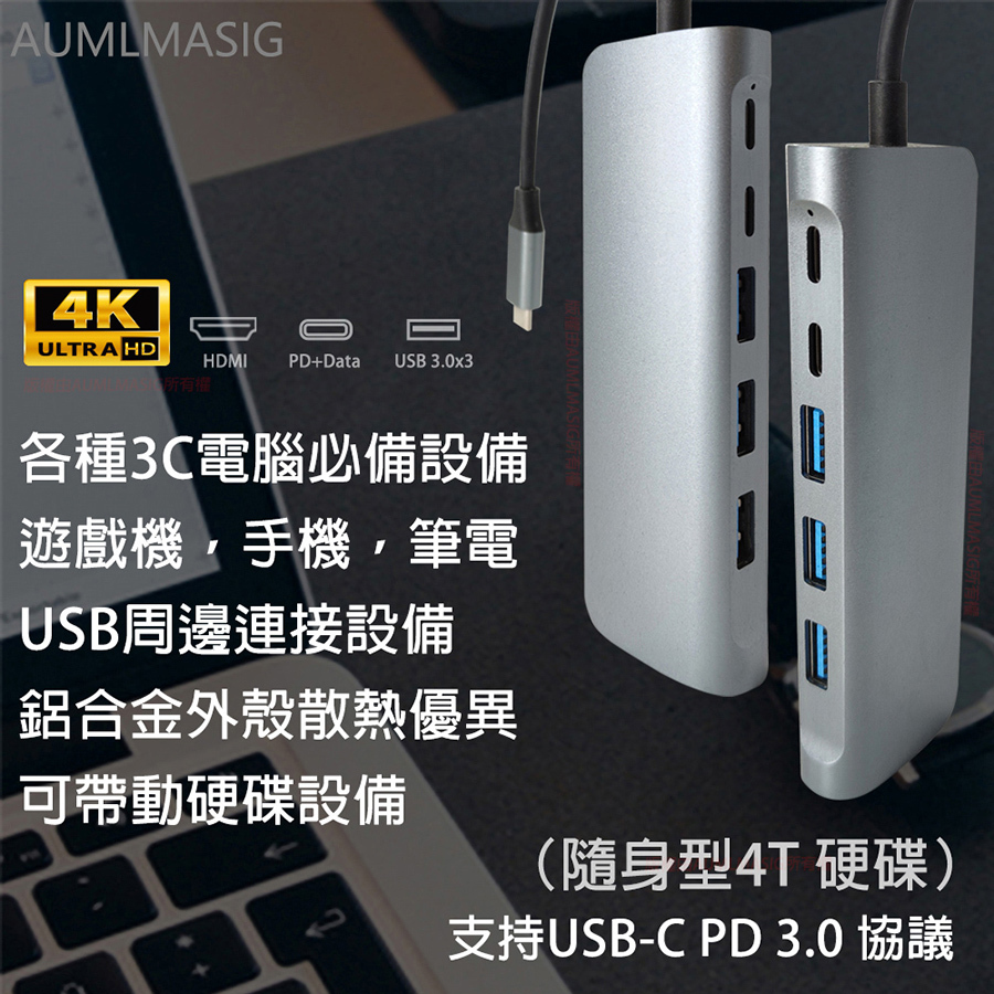 ▼可帶動硬碟設備(隨身型4T 硬碟)支持USB-C PD 3.0 協議