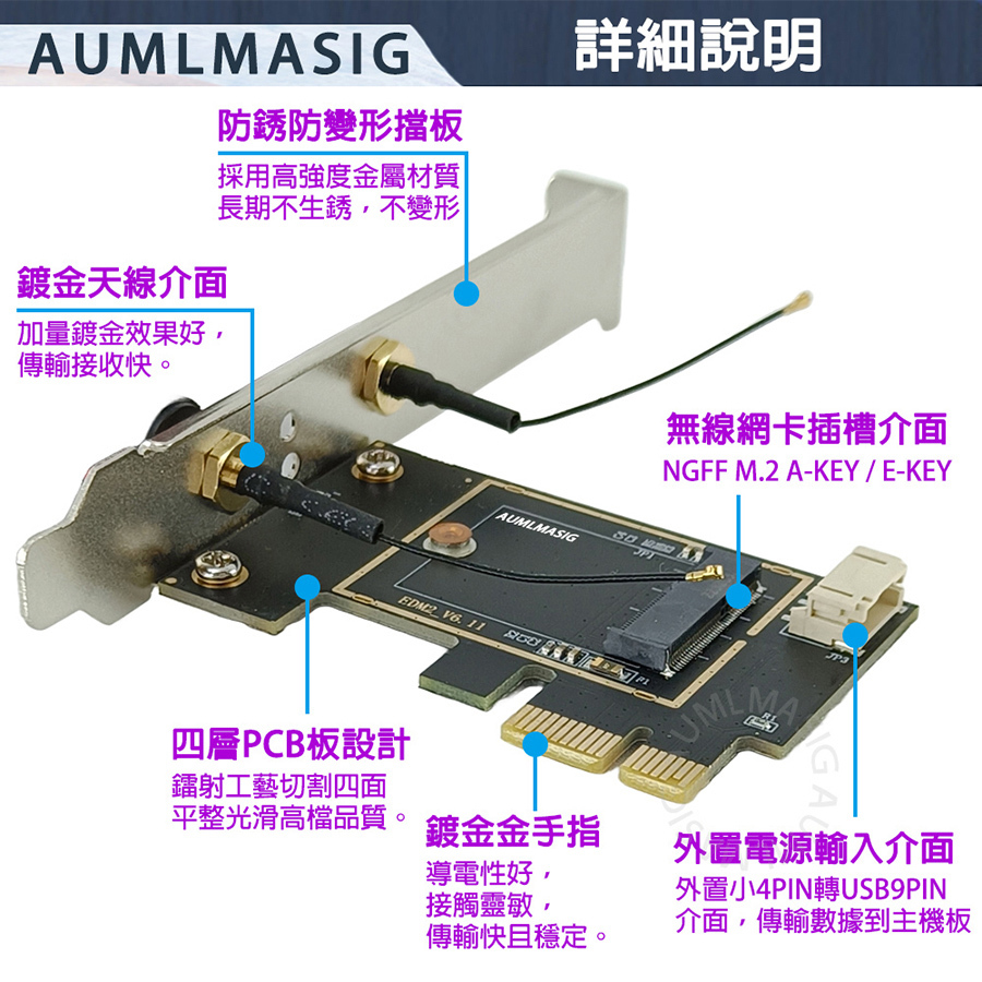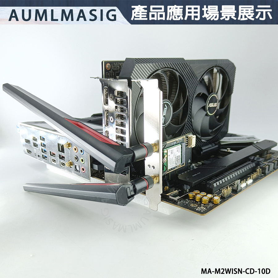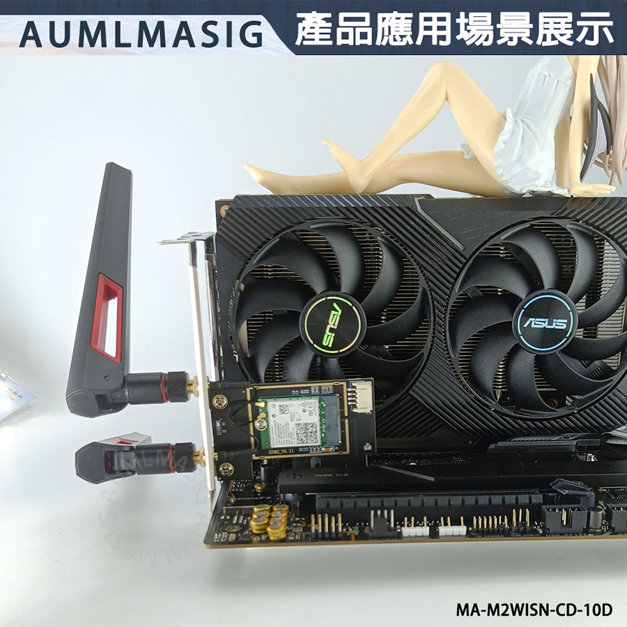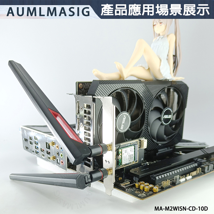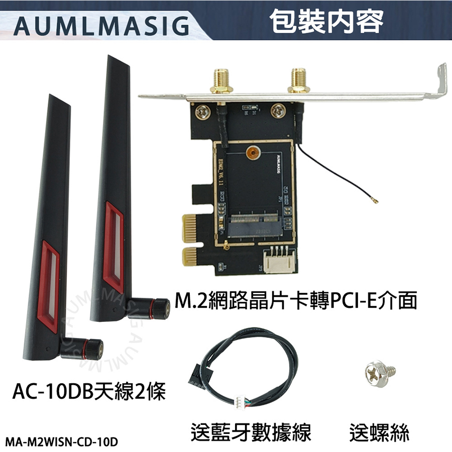AUMLMASIG M.2 wireless network module to PCI-E adapter card--with 10DB antenna MA-M2WISN-CD-10D NGFF M.2 to PCIE wireless network card