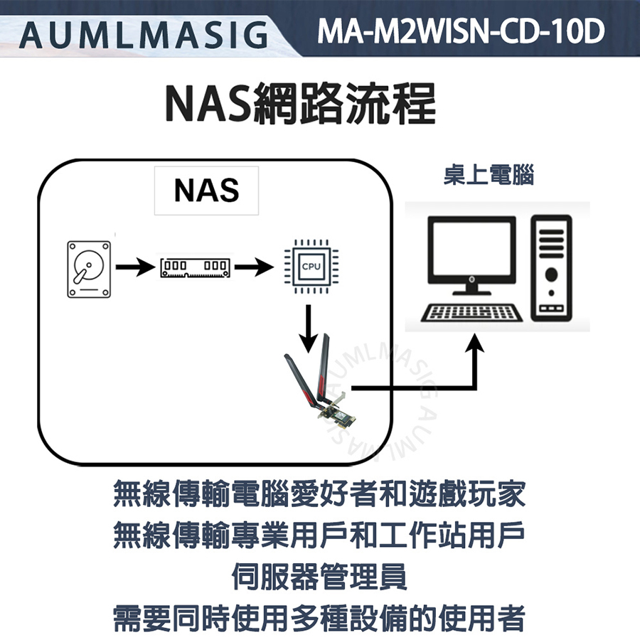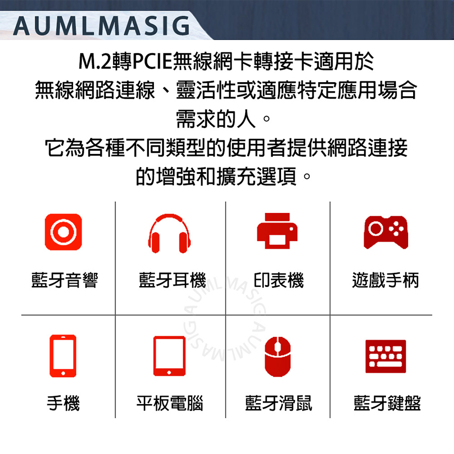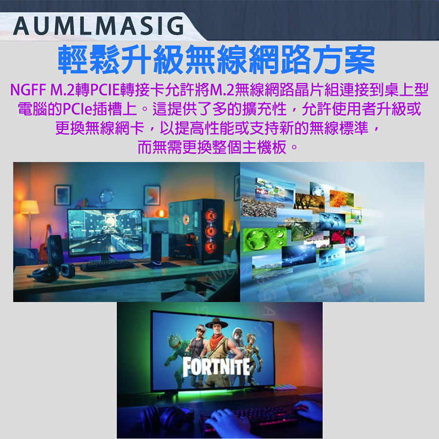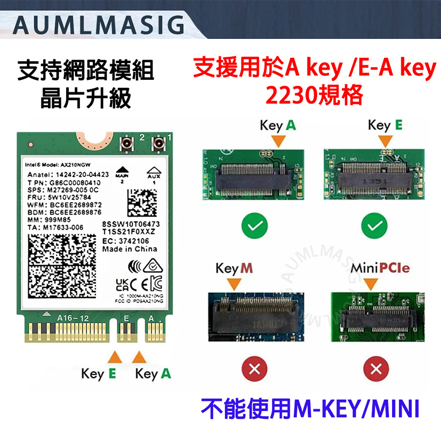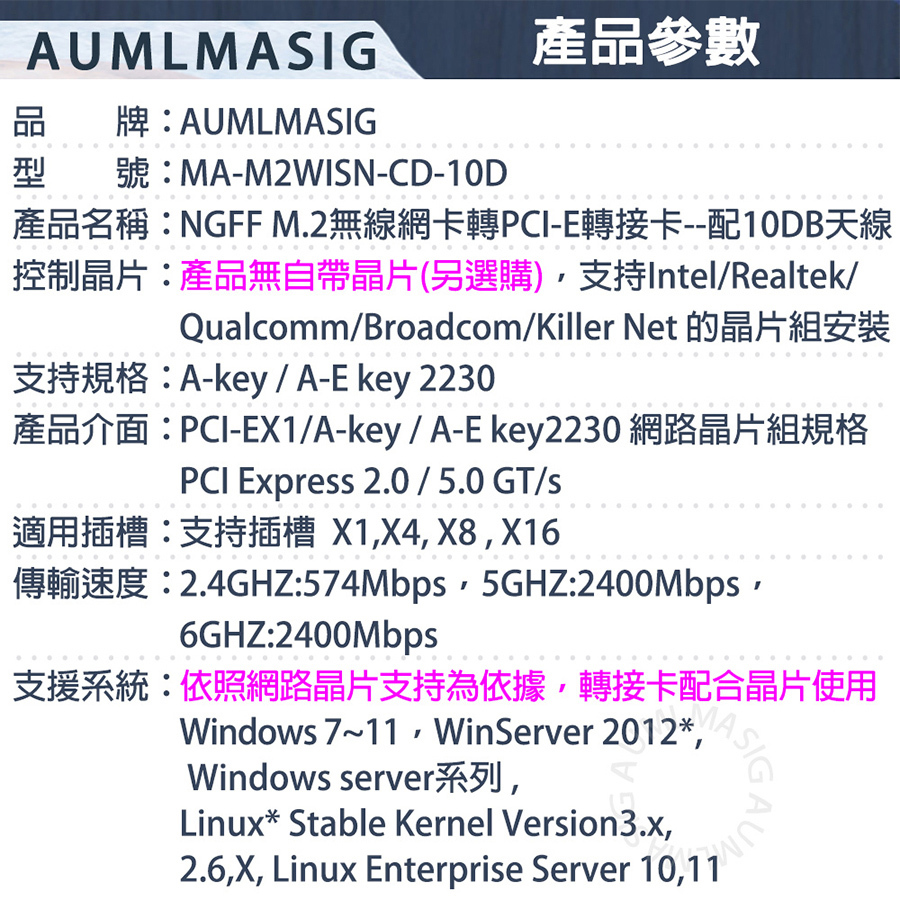 AUMLMASIG M.2 wireless network module to PCI-E adapter card--with 10DB antenna MA-M2WISN-CD-10D NGFF M.2 to PCIE wireless network card