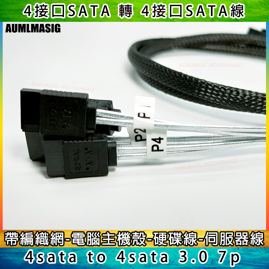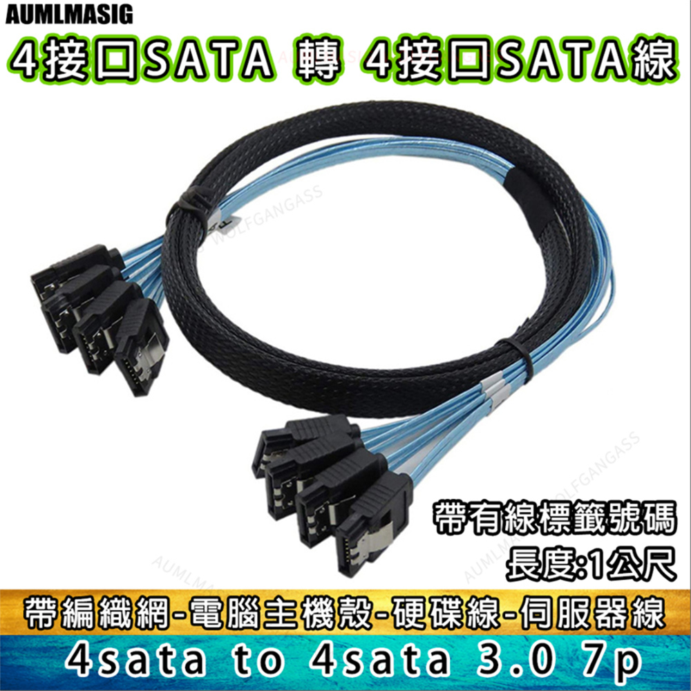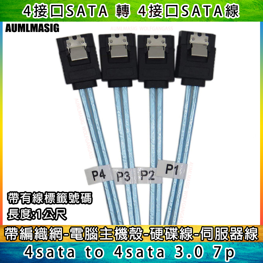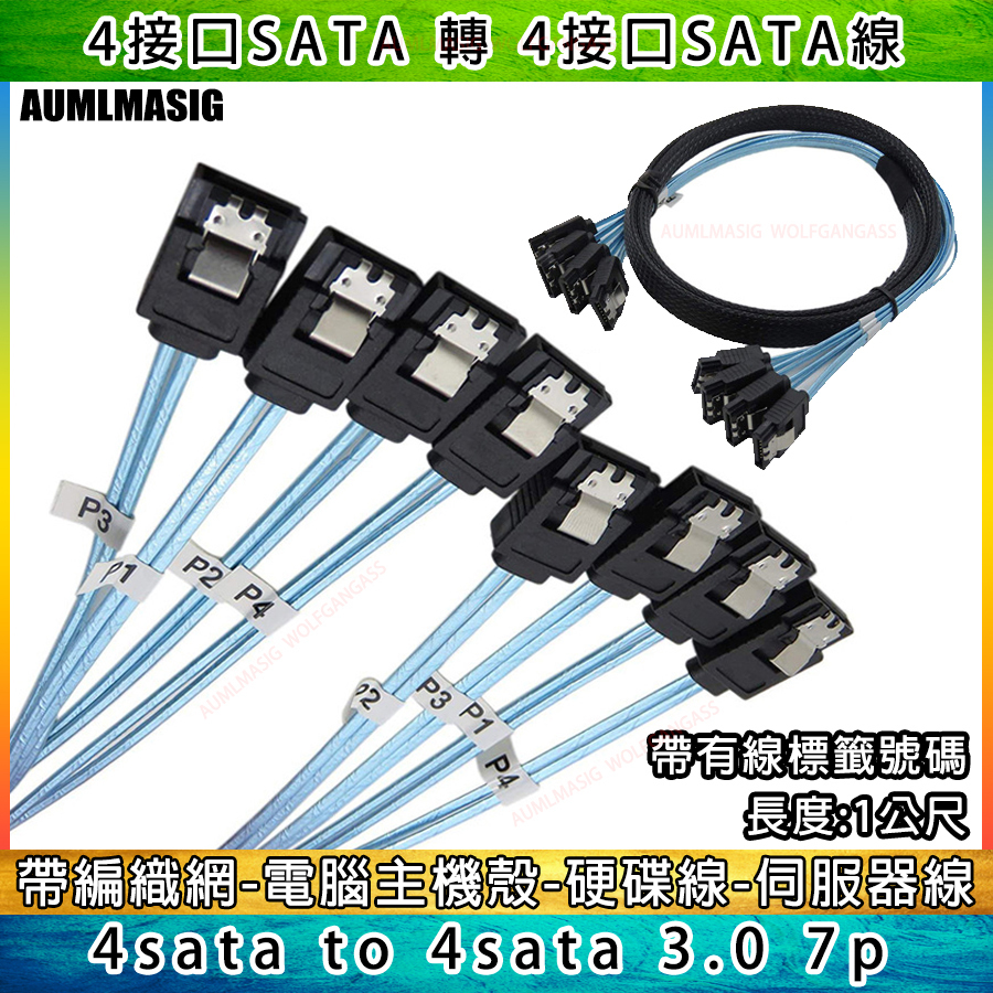 AUMLMASIG [High Quality SATA3.0 Transmission Cable 4 Ports to 4 Ports-With Number-1m Length] SATA Cable with Braided Mesh Computer Hard Disk Cable Server Cable
