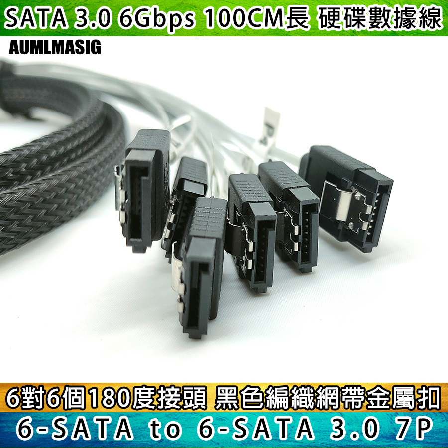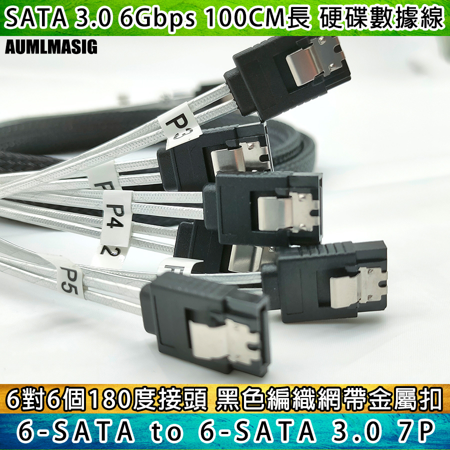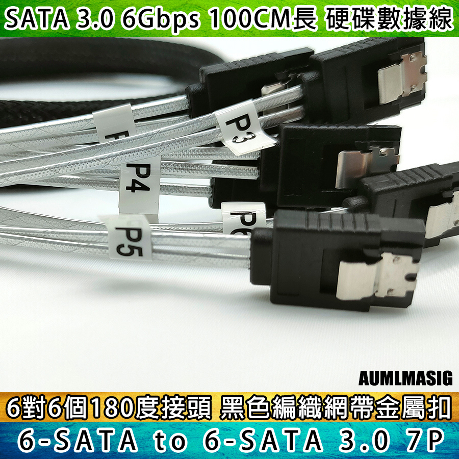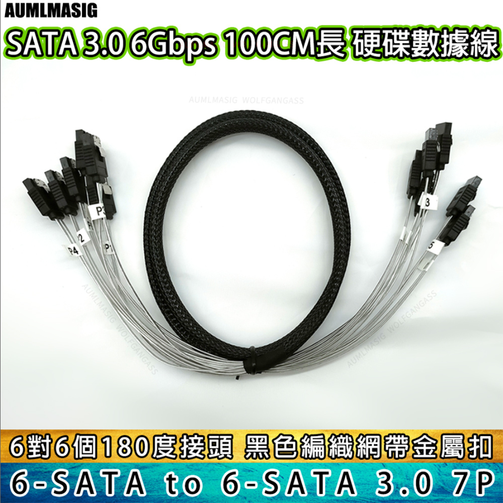 AUMLMASIG All-through Master [High-quality SATA3.0 transmission line 6 sets of interfaces to 6 sets of interfaces - with number - 1 meter length] SATA cable with braided network computer hard disk cable server cable