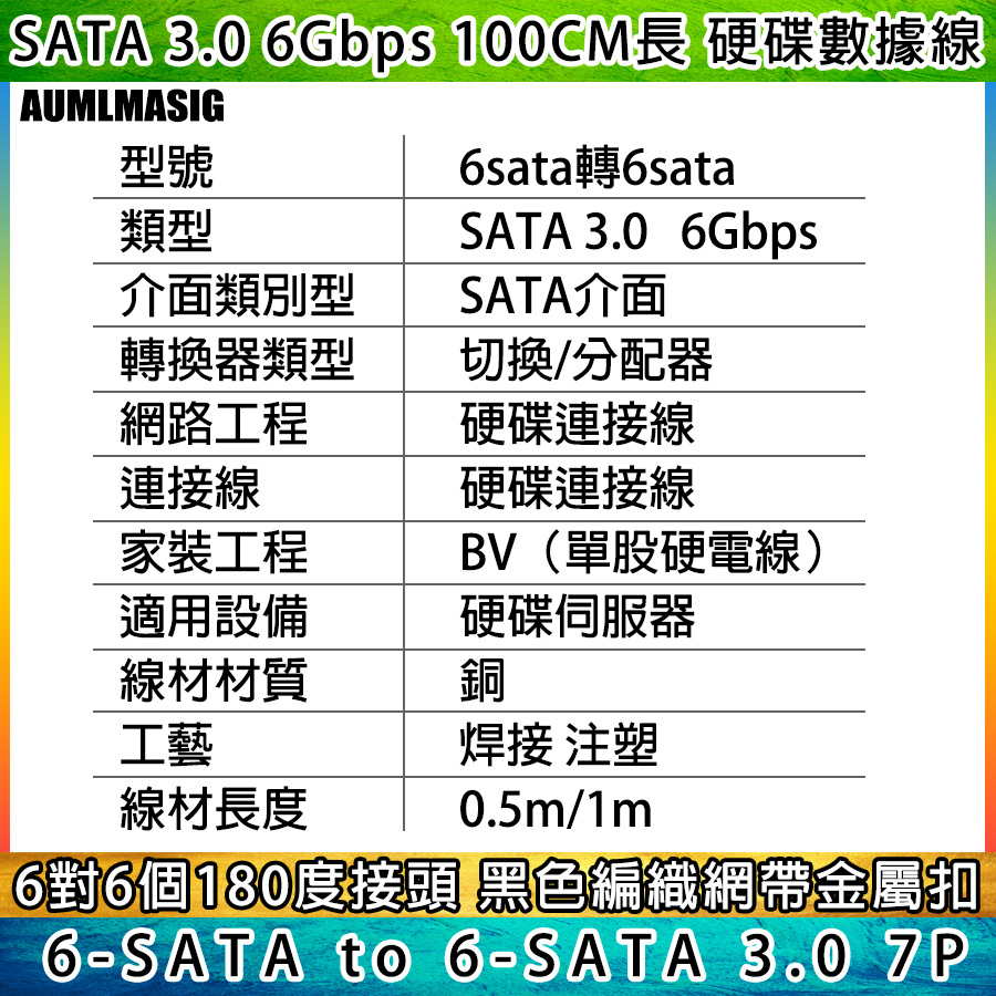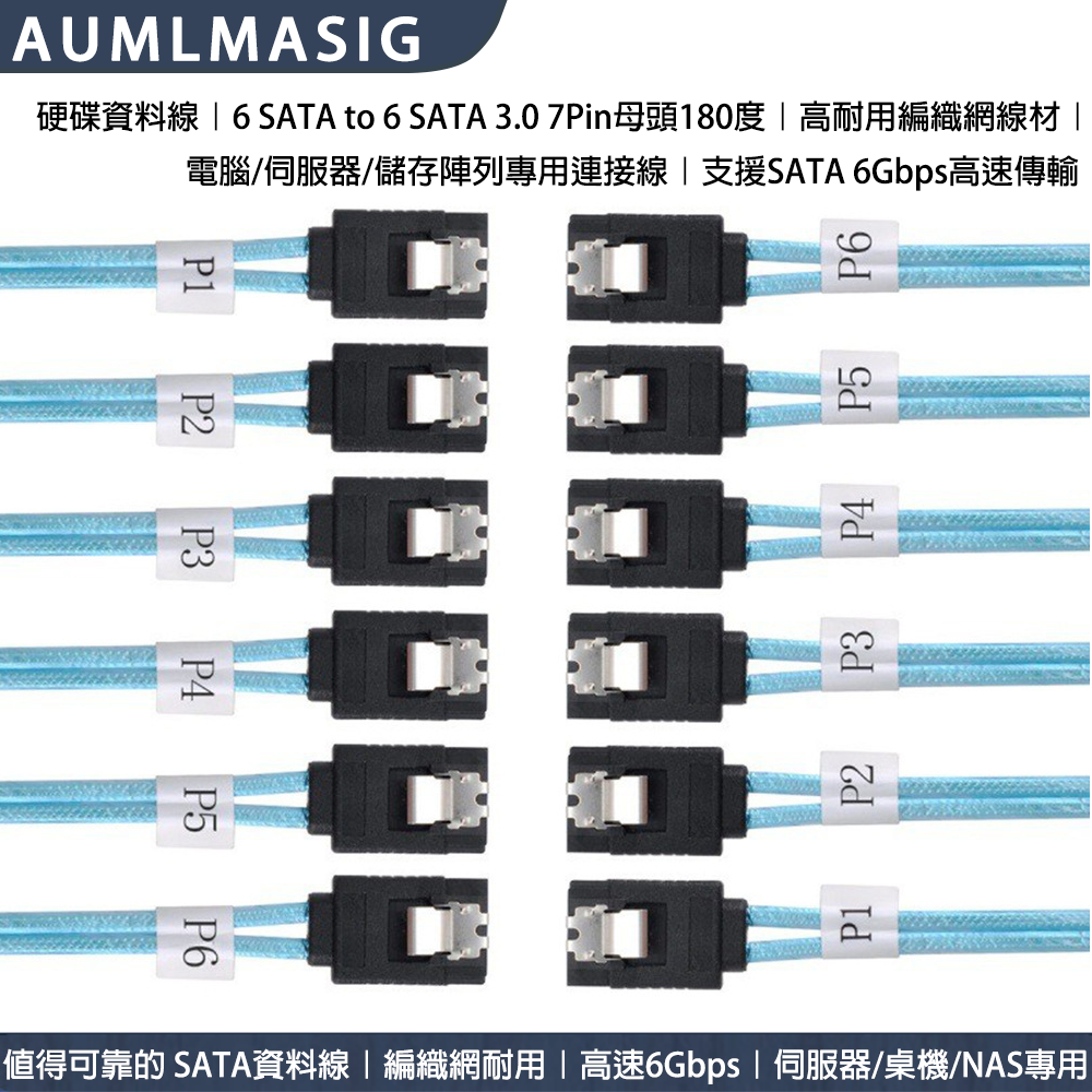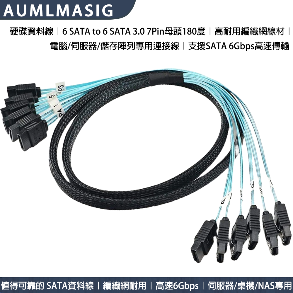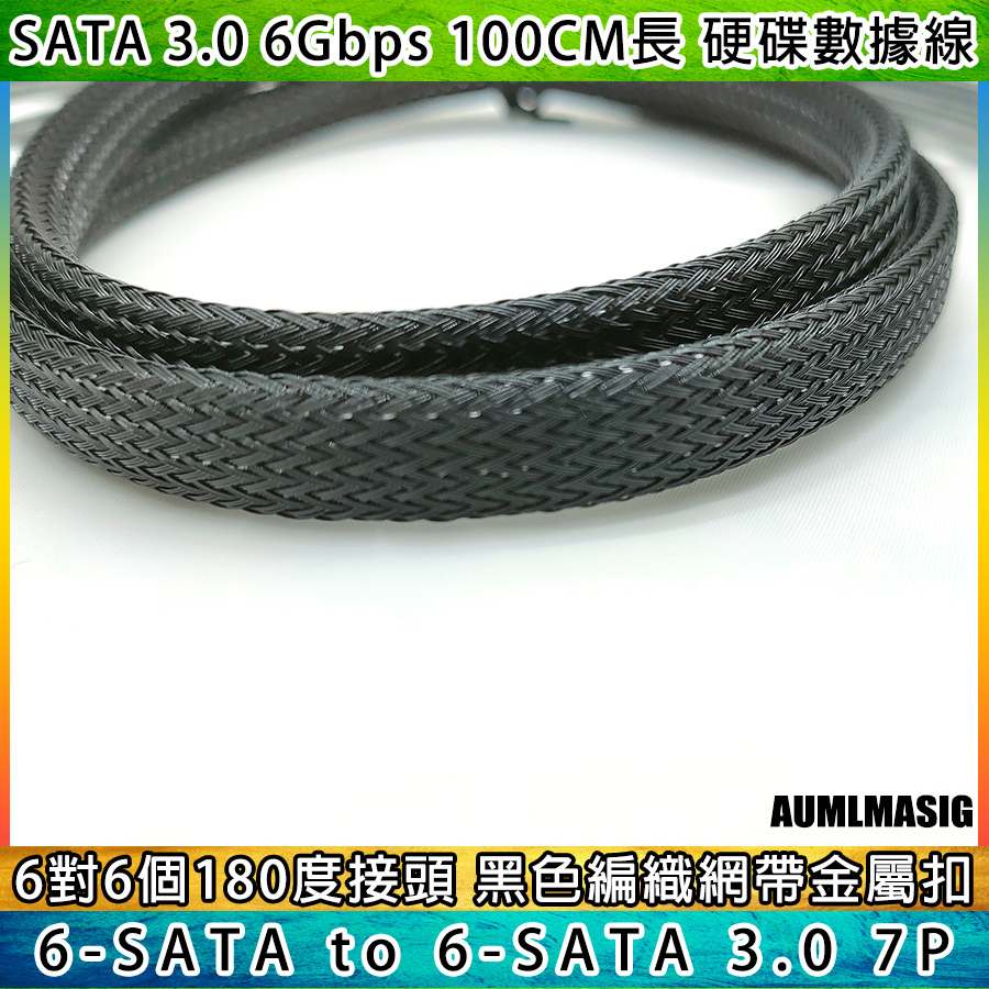 AUMLMASIG All-through Master [High-quality SATA3.0 transmission line 6 sets of interfaces to 6 sets of interfaces - with number - 1 meter length] SATA cable with braided network computer hard disk cable server cable