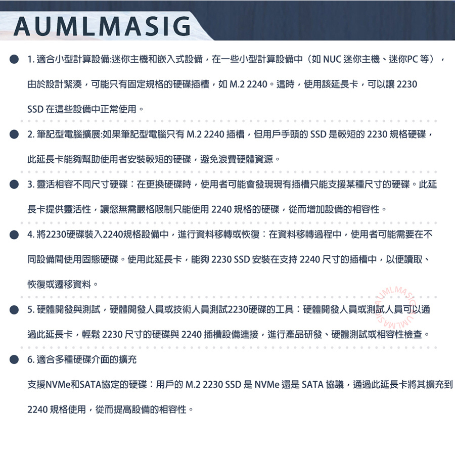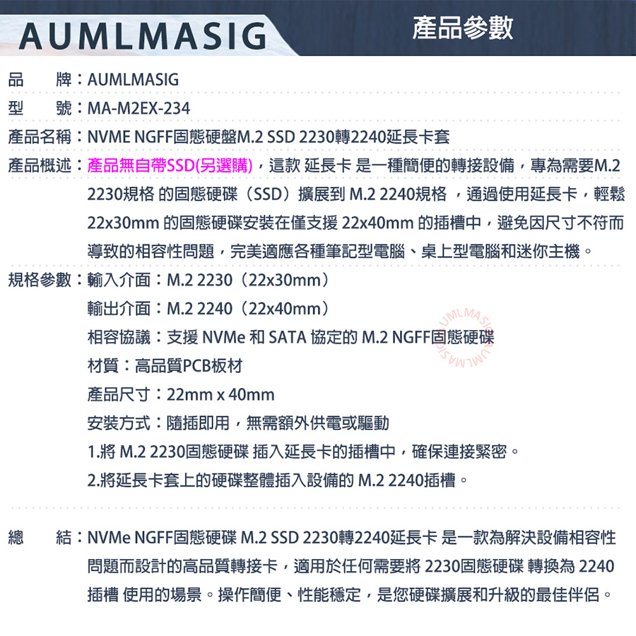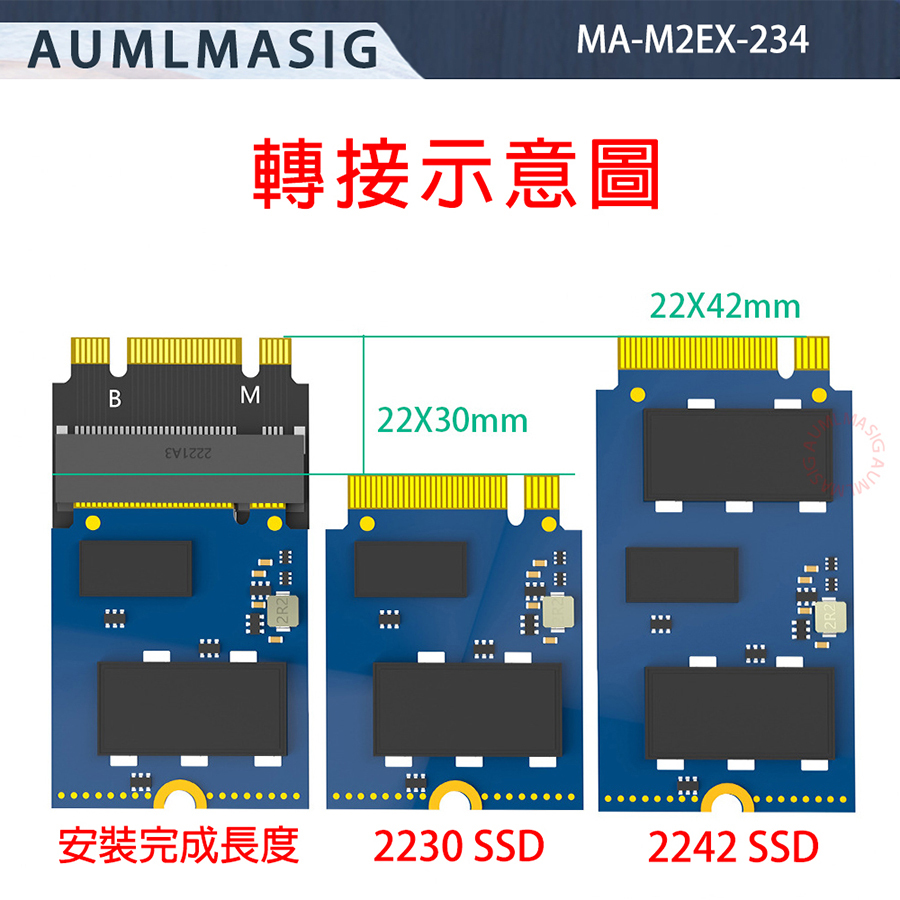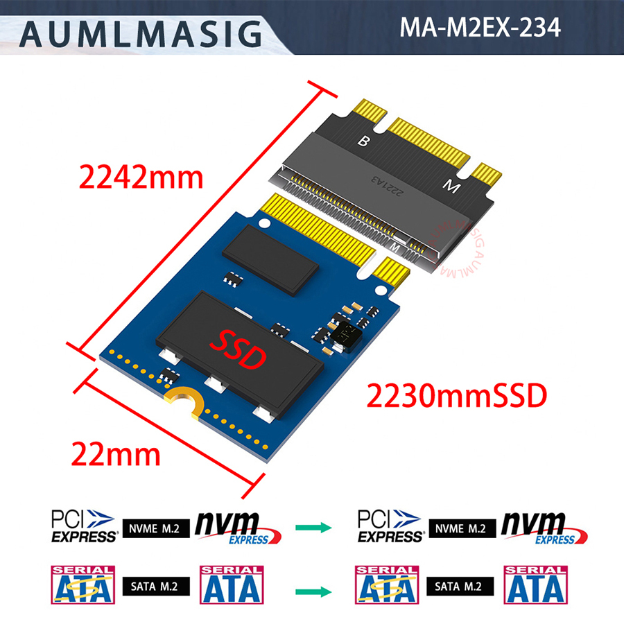AUMLMASIG NVMe solid state drive M.2 SSD 2230 to 2240 extension card holder suitable for M.2 NGFF (Key M) solid state drive NVMe protocol SSD
