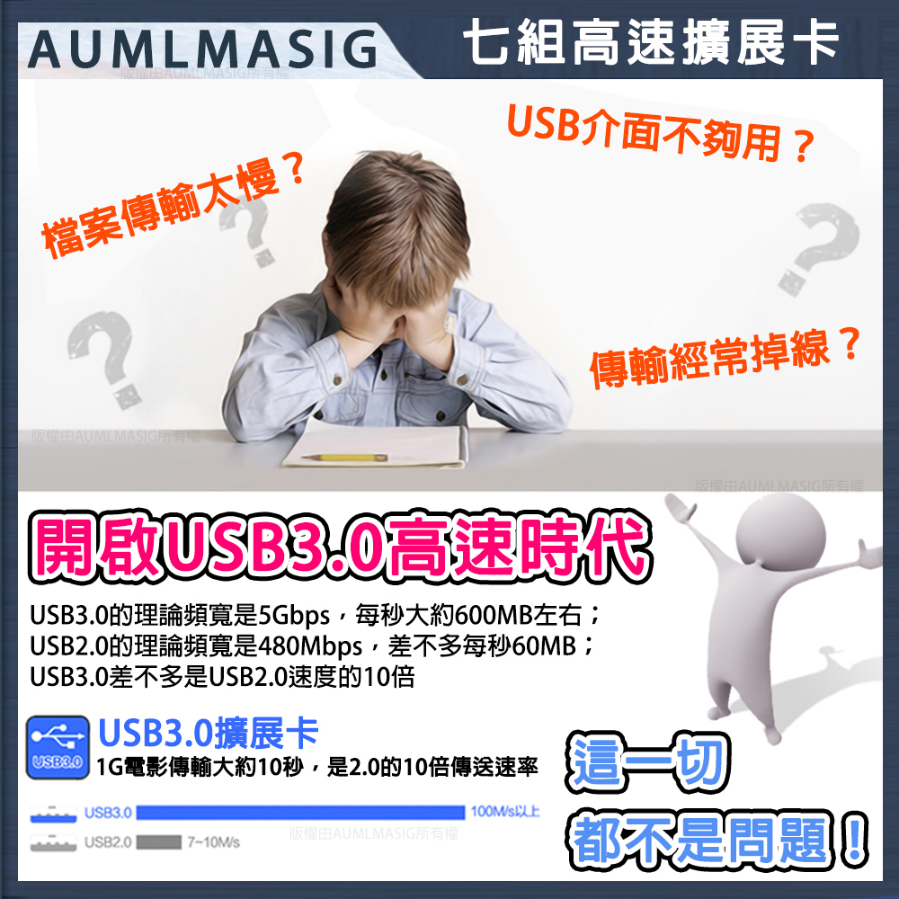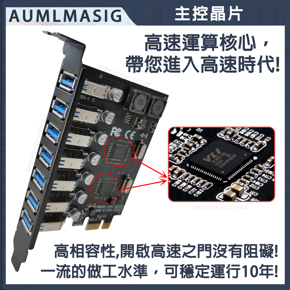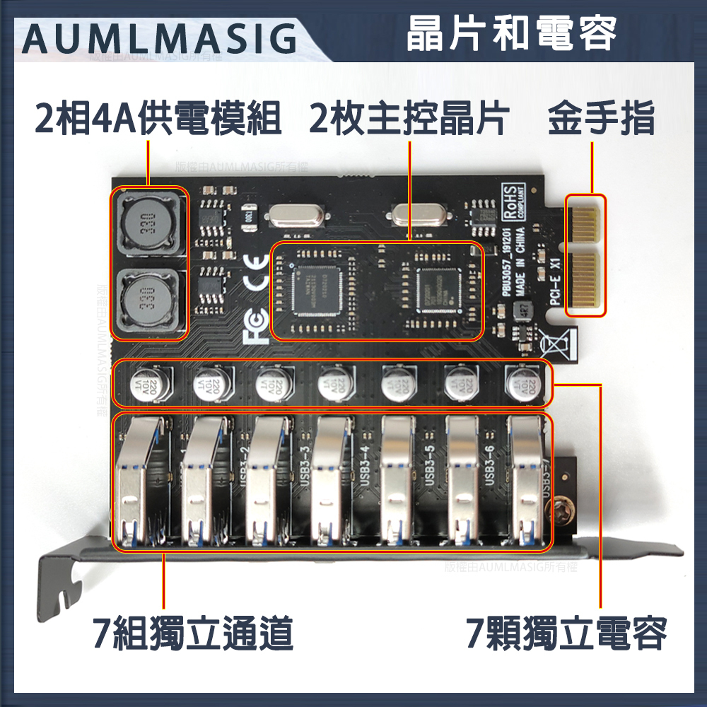 [AUMLMASIG] High-speed 7-PORT computer motherboard expansion card / PCI-E to USB 3.0 expansion card / Desktop computer USB3.0 expansion card with up to 7 rear connections / NEC main control chip / Driver-free installation is very convenient