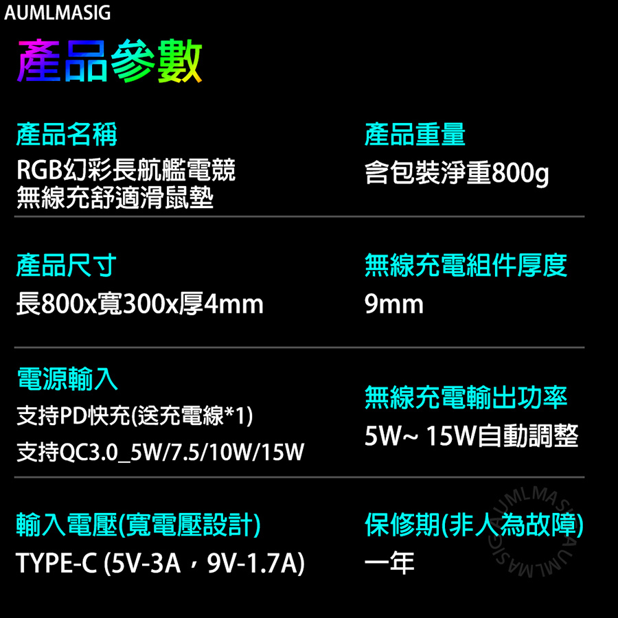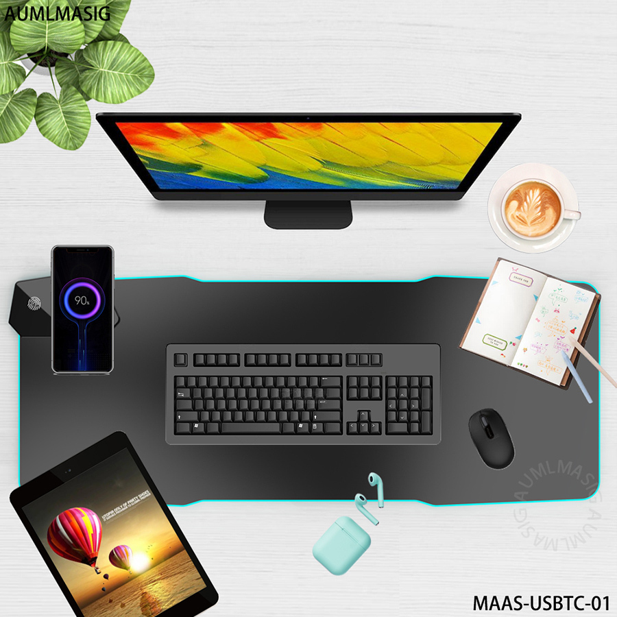 AUMLMASIG RGB Gaming Long Cruiser Wireless Charging Long Mouse Pad T-C Wireless Fast Charging Rapidly Replenishes Power Type-c Input Charging Interface Charging Your Wireless Devices Anytime Watches Mobile Phones Headphones Mouse Low Latency High Precision Wide Area Soft Material Comfortable Your Wr