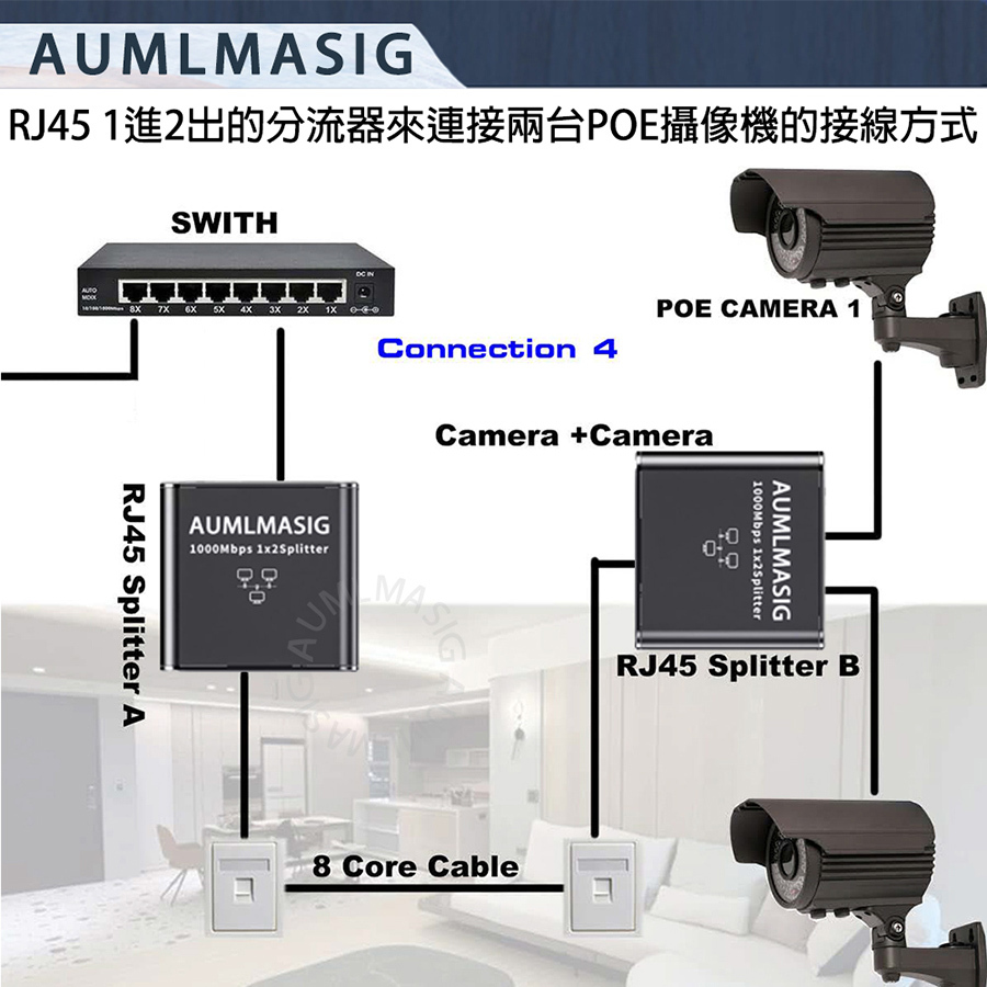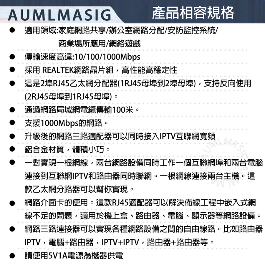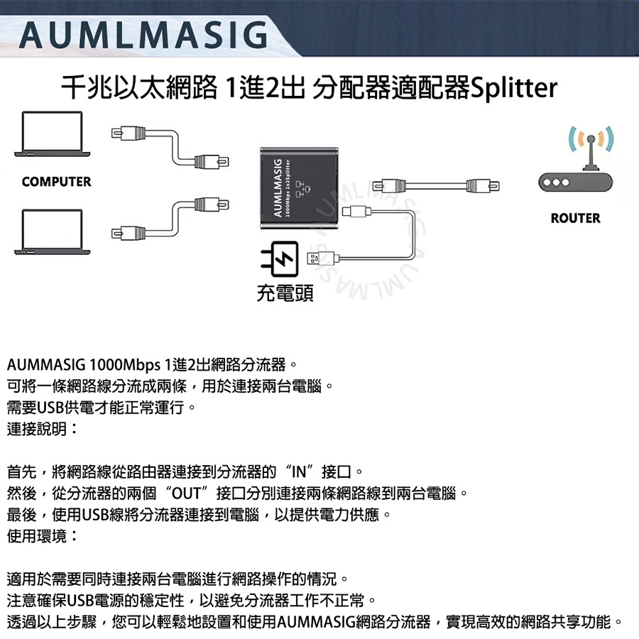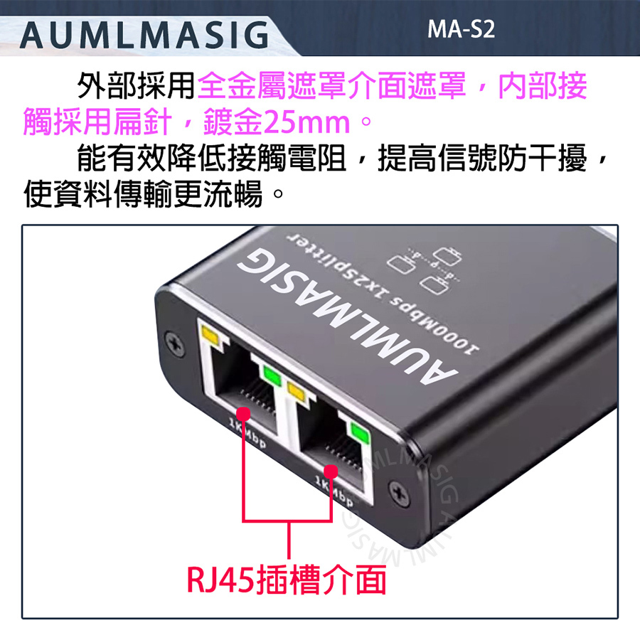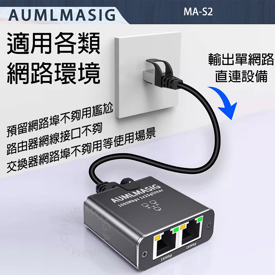 AUMLMASIG 2 PORT Ethernet Adapters Small/Micro Gigabit Network Splitter/Broadband Network 2-port Device Side Splitter/Connector RJ45 Applicable: Home Network Sharing/Office Network Distribution/Security Monitoring System/Commercial Place Application/Network game