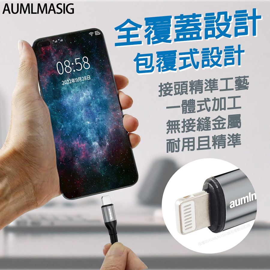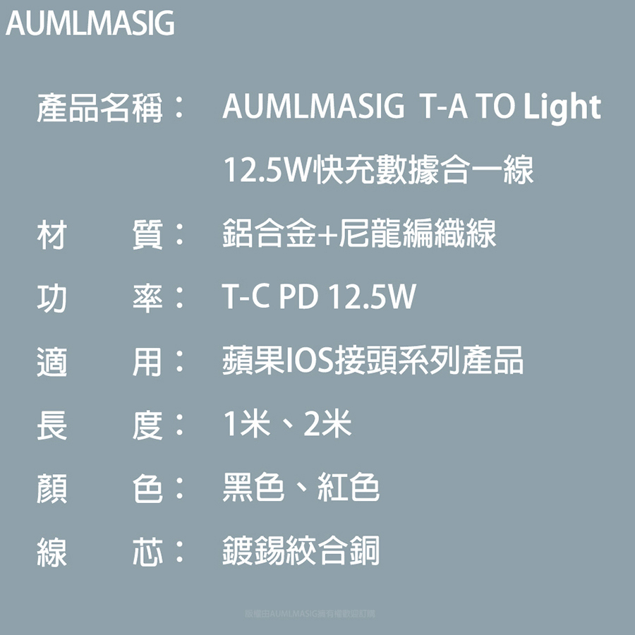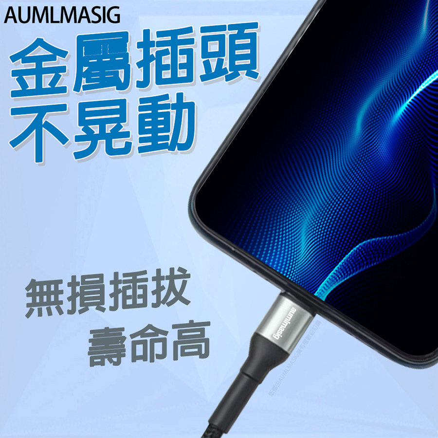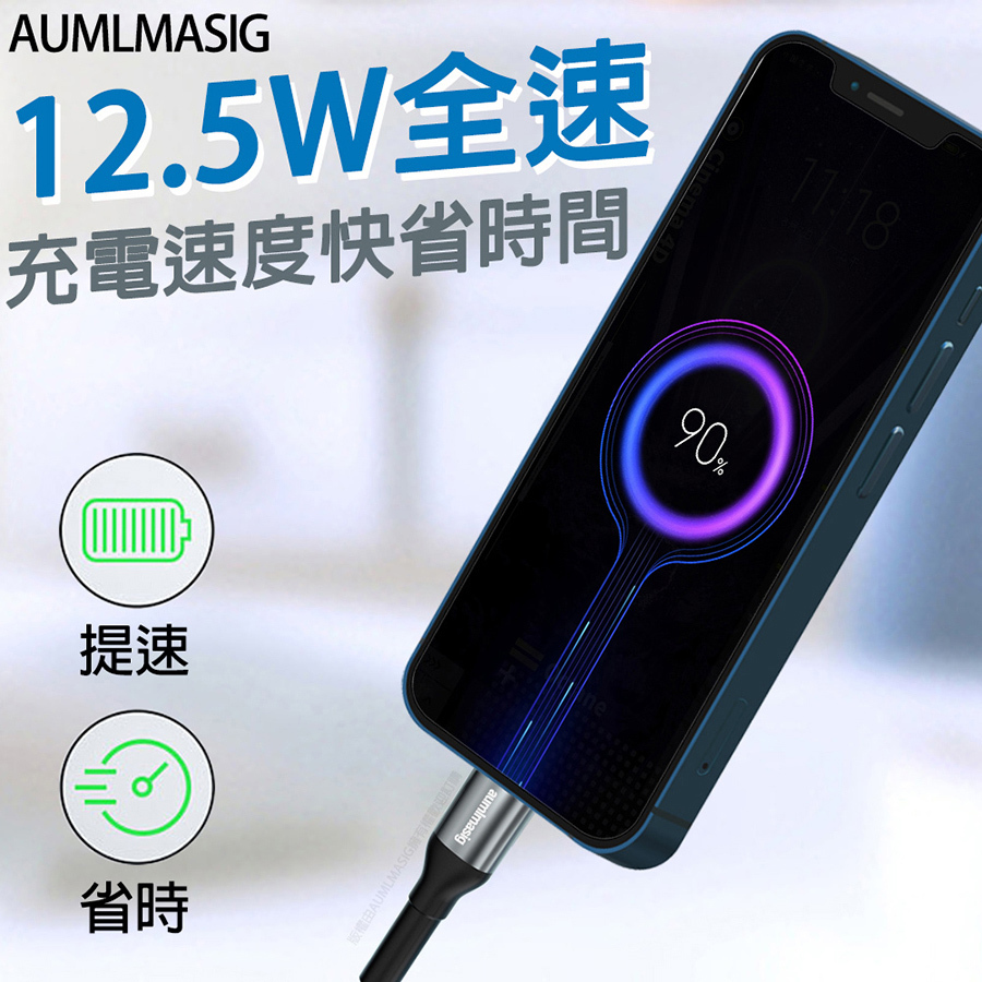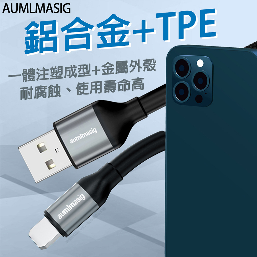 AUMLMASIG【Type-A TO Lightning PD 12.5W 資料充電線】快充結合數據線鋁合金+TPE最大12.5W充電全速  支持快充技術5V-2.5A 金屬接頭耐用充電線