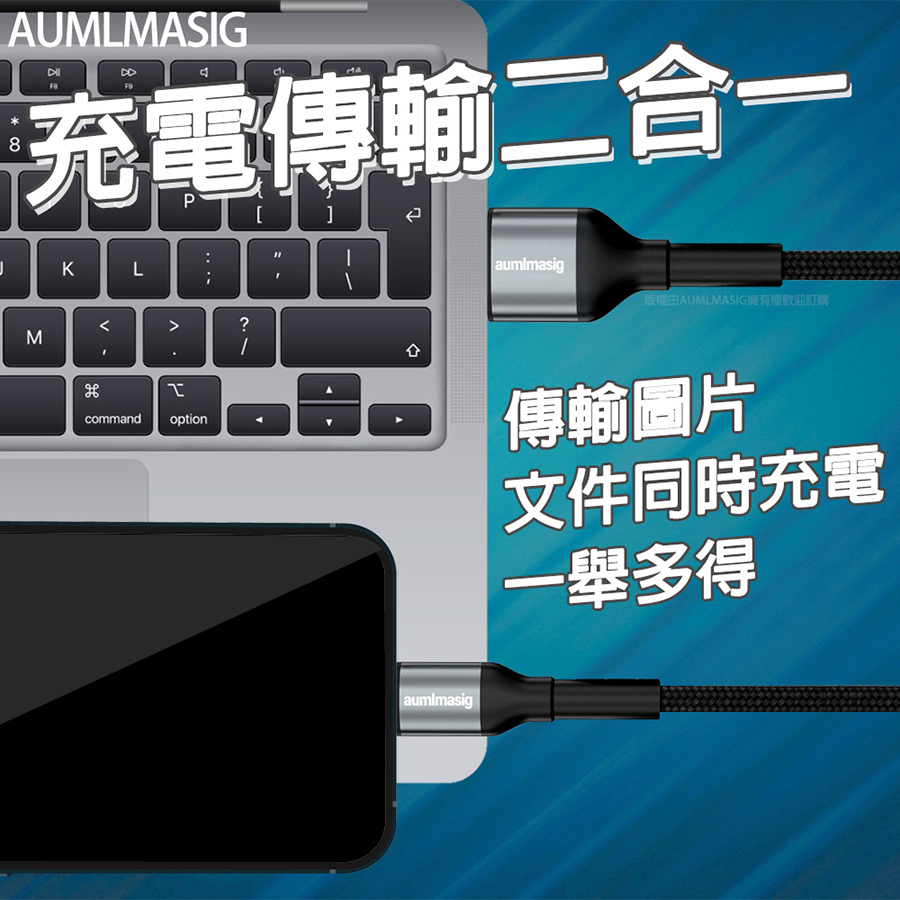 AUMLMASIG【Type-A TO Lightning PD 12.5W 資料充電線】快充結合數據線鋁合金+TPE最大12.5W充電全速 支持快充技術5V-2.5A 金屬接頭耐用充電線