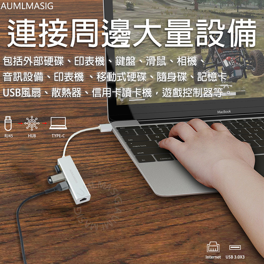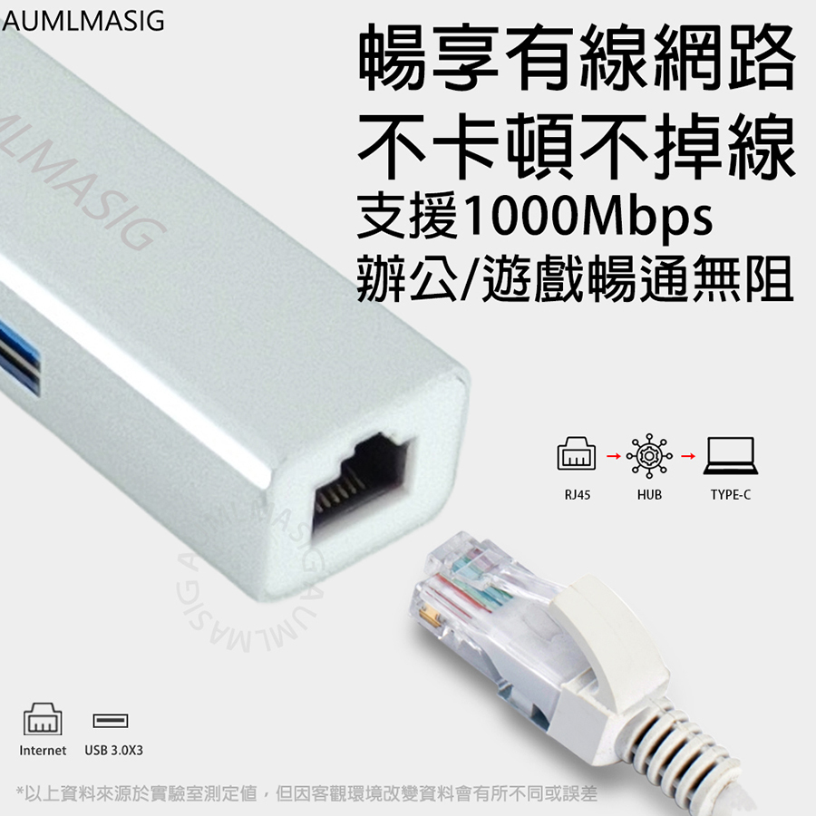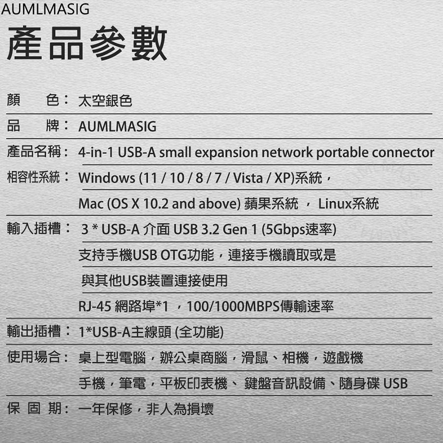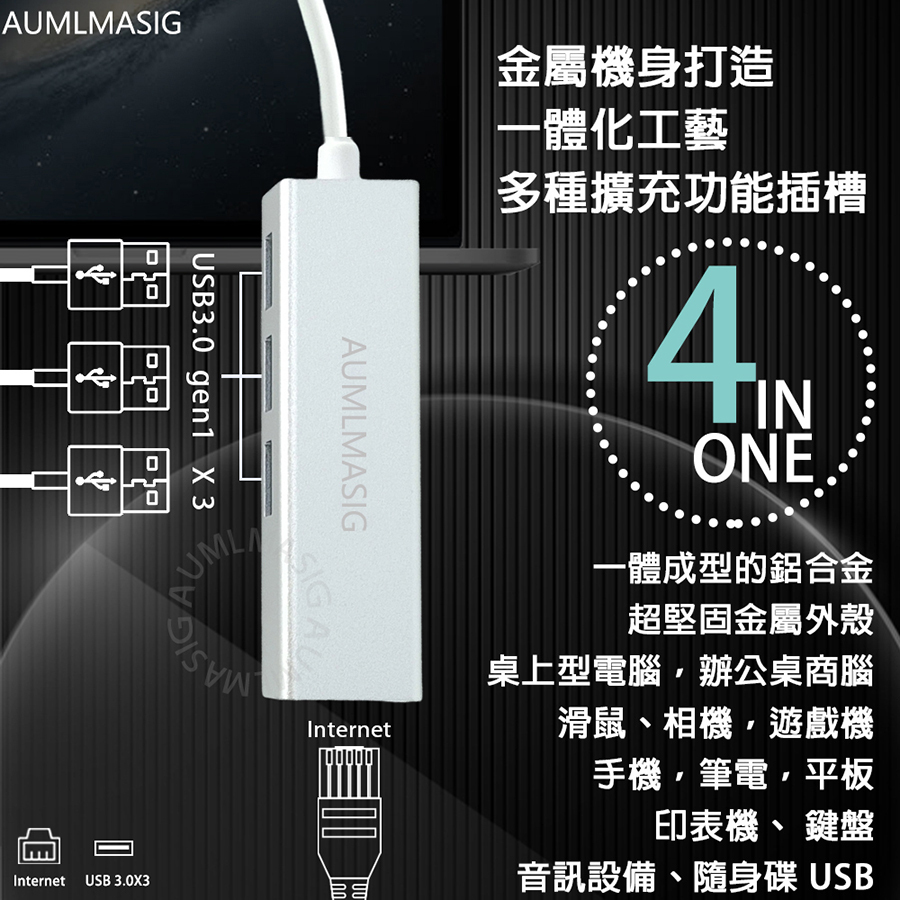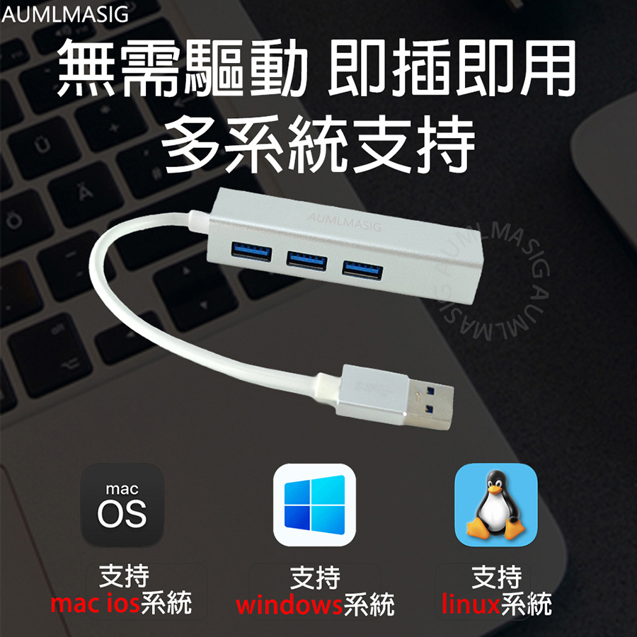 [AUMLMASIG] 4-in-1 USB-A small expansion network RJ45 portable hub / USB TYPE-A to RJ45 wired network adapter 1000Mbp, aluminum alloy body + built-in dual-chip 1*RJ45+3*USB3 .0 A savior for host/laptop circuit damage*USB 3.2 data transfer rate up to 5 Gpbs*Can be connected to mobile SSD hard drives,