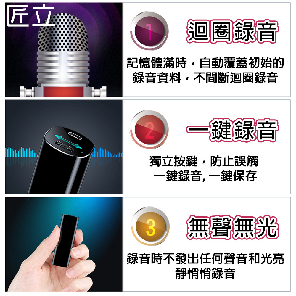 Long-lasting secret recorder, audio black box, instant listening, high concealment, one-click recording, one-click save, silent and light-free recording, evidence extraction, metal appearance and texture, long-lasting type
