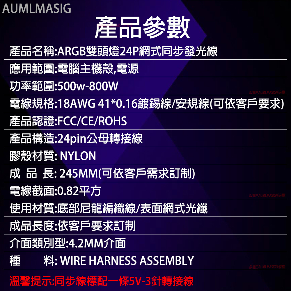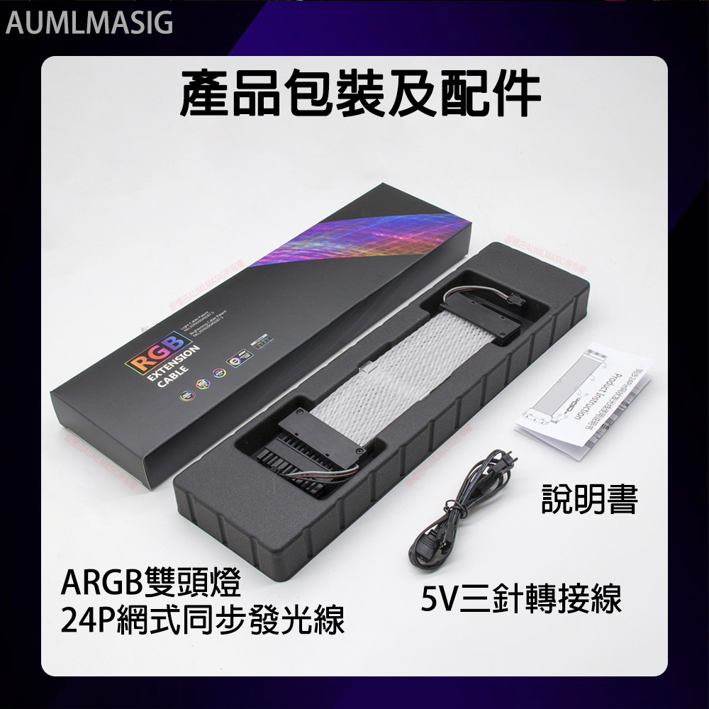 產品名稱:AUMLMASIG 主機板-ARGB神光煥彩雙向燈24PIN網絲同步發光電源線