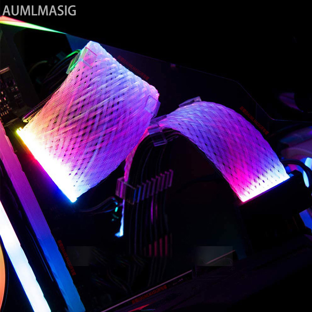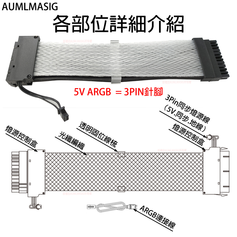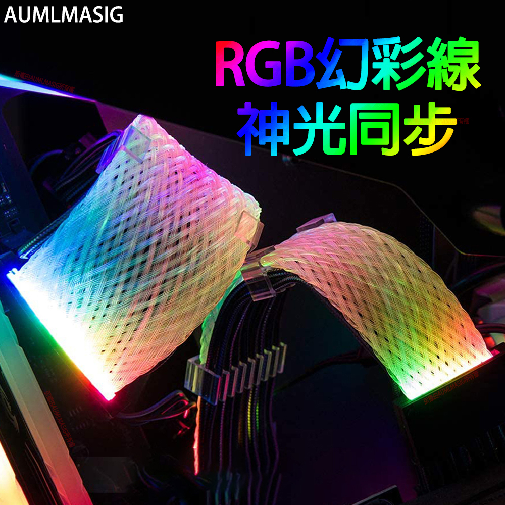 AUMLMASIG【電競首選-網絲式】【改裝-2合一ARGB雙向燈24P網絲式同步發光線+電源線】主機板-ARGB神光幻彩雙向燈24PIN網絲同步發光電源線 / 贈送:同步線一條5V-3PIN-ARGB轉接線