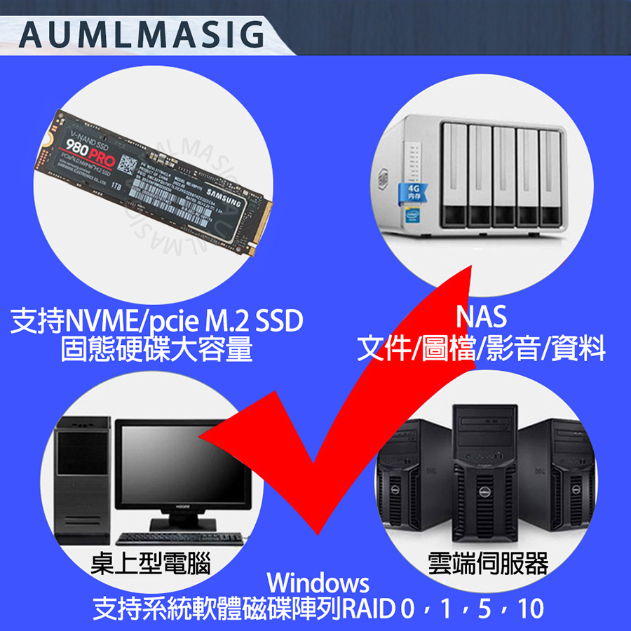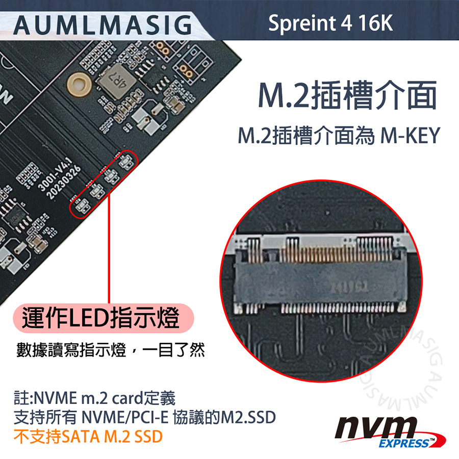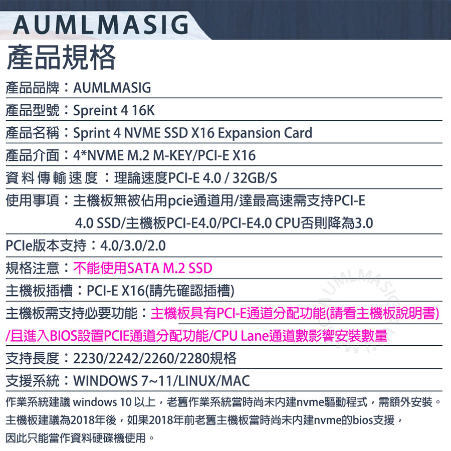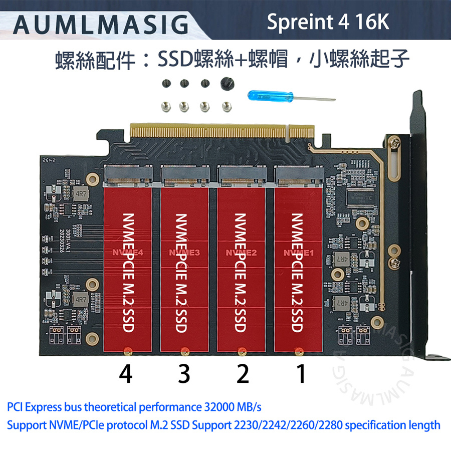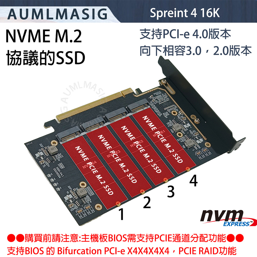 Sprint 4 X16K 4 PORT M.2 SSD軟RAID陣列擴充卡 PCI-E4.0 高速儲存資料 支持多種作業系統 win11,linux,影音NAS ,高階主機 伺服器, 工作站,資料庫 (5年有限保