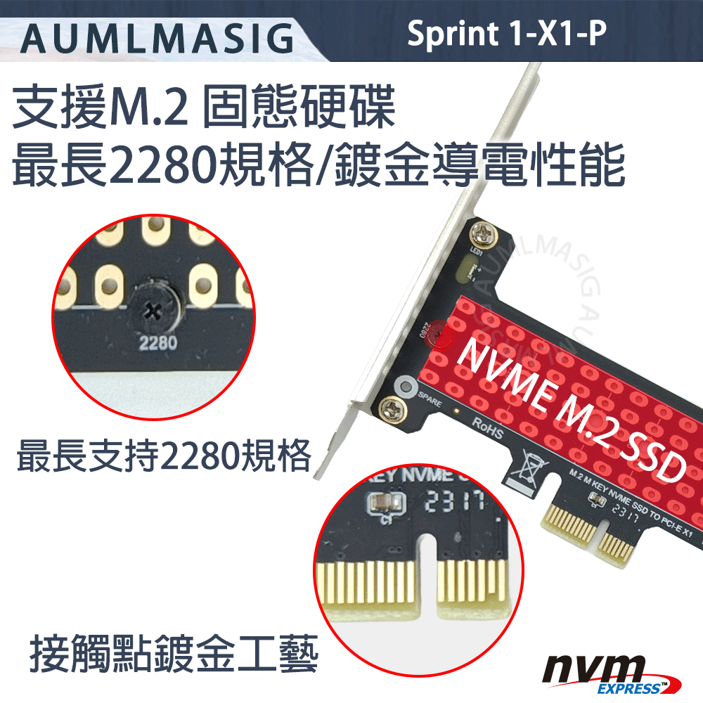 • 僅支援 NVMe(M-Key),SATA M.2 不支援,購買前請確認規格
