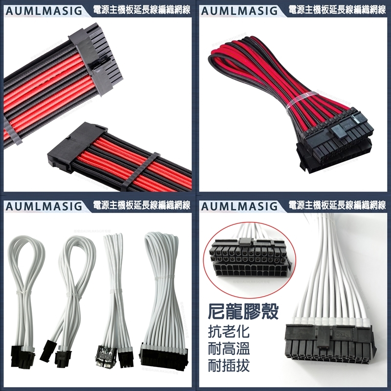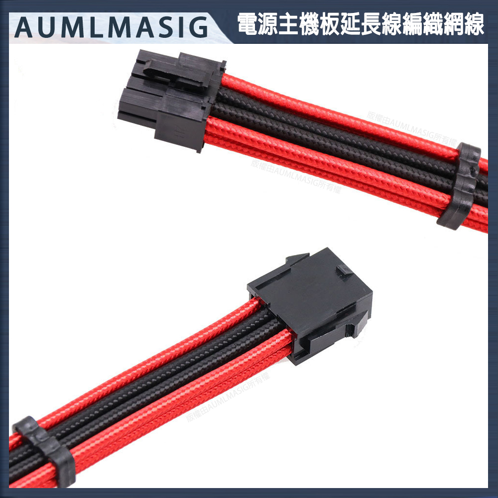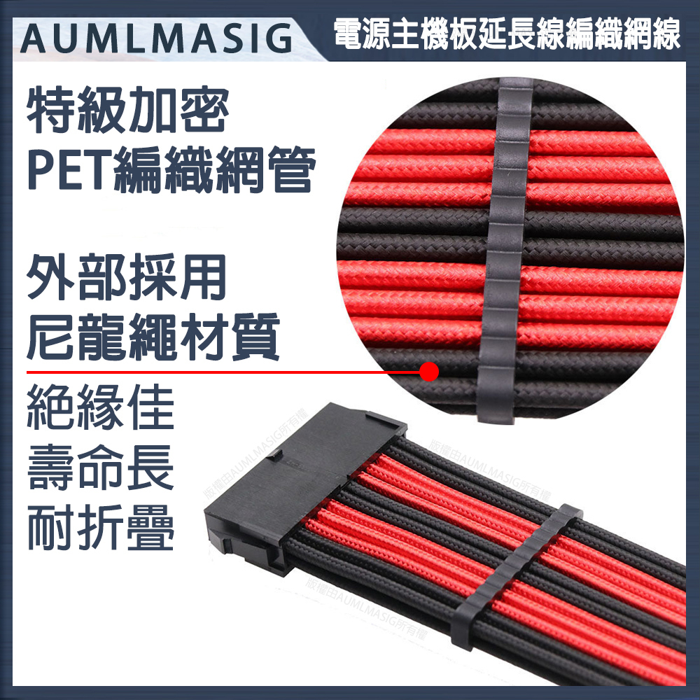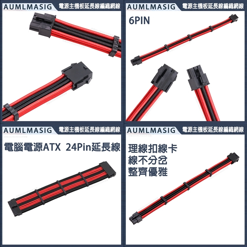 【AUMLMASIG】【紅黑色-PC電腦總電源線組合改裝品】一次搞定 主機板ATX 24Pin延長線+CPU處理器 8(4+4)P供電顯示卡8P*1+6P*1線組 /DIY玩家首選 /電競、重裝、旗艦、改機 /特級尼龍編織網線組 /電腦電源線/延長線