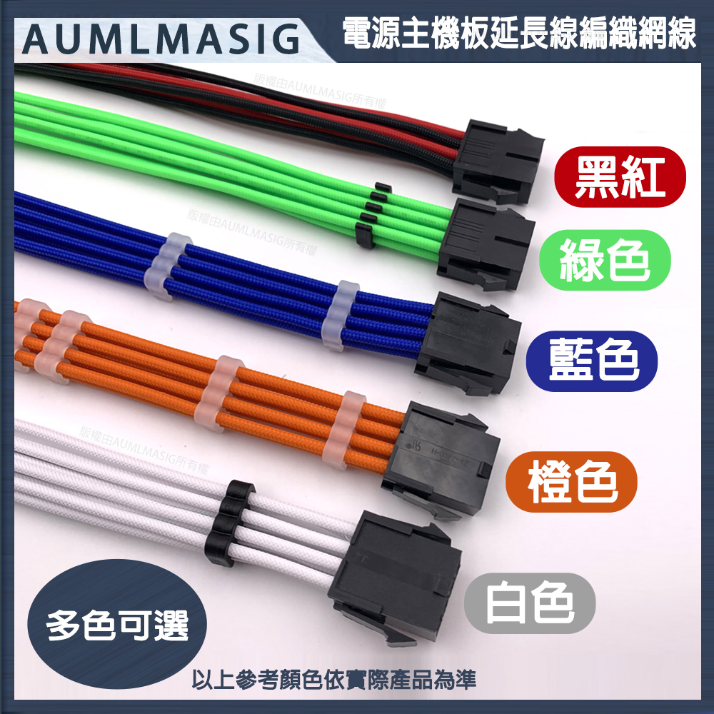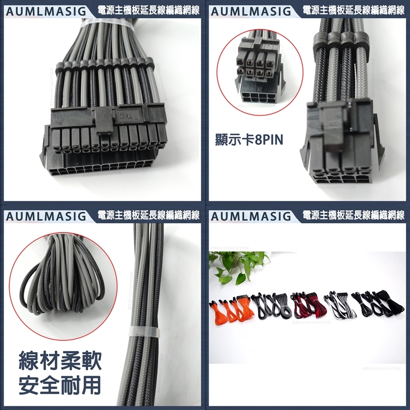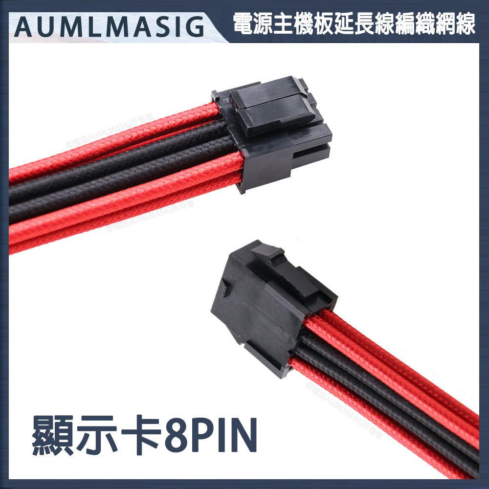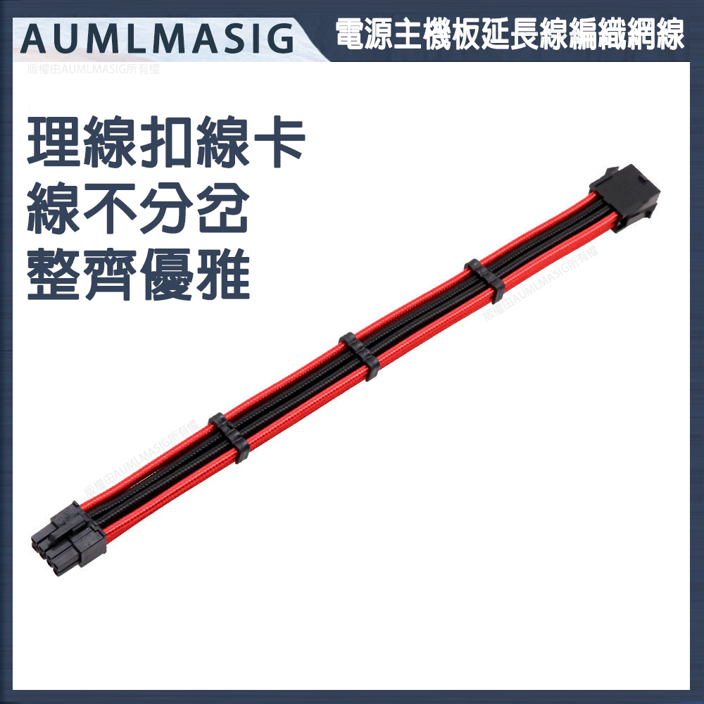 【AUMLMASIG】【紅黑色-PC電腦總電源線組合改裝品】一次搞定 主機板ATX 24Pin延長線+CPU處理器 8(4+4)P供電顯示卡8P*1+6P*1線組 /DIY玩家首選 /電競、重裝、旗艦、改機 /特級尼龍編織網線組 /電腦電源線/延長線