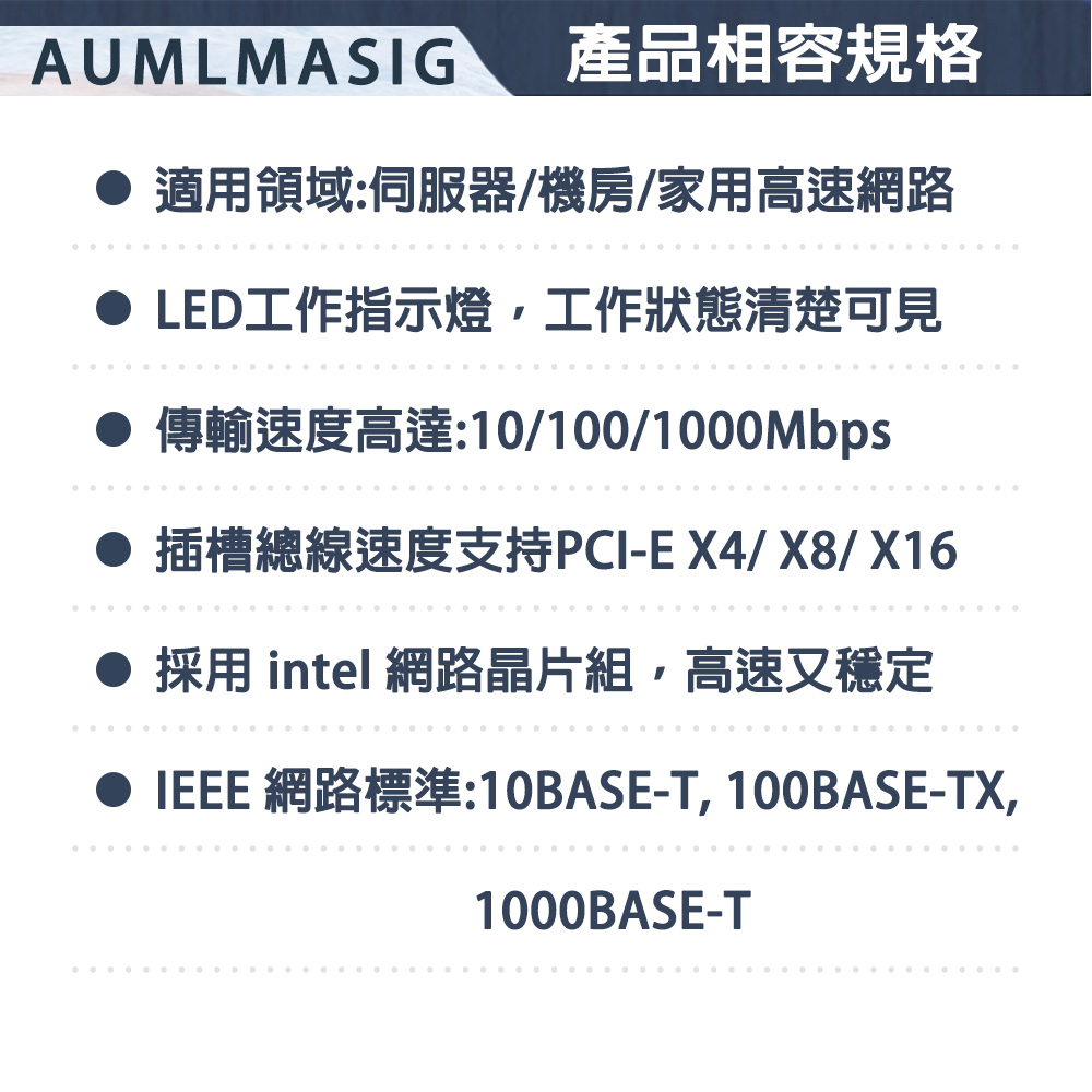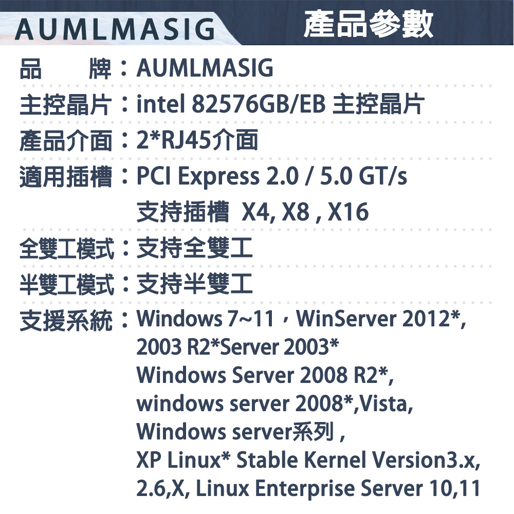 AUMLMASIG 2 PORT Ethernet Adapters Intel82576GB/EB系列強勁晶片 2組RJ-45 /PCI-E介面 雙組伺服乙太網路介面卡