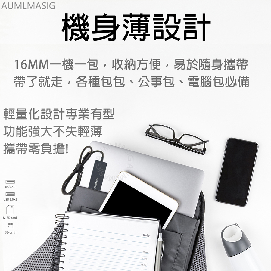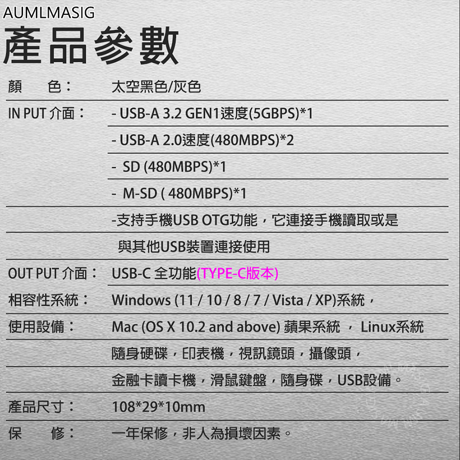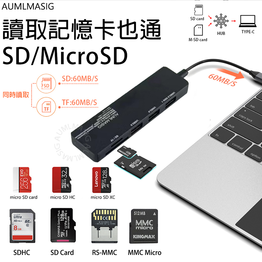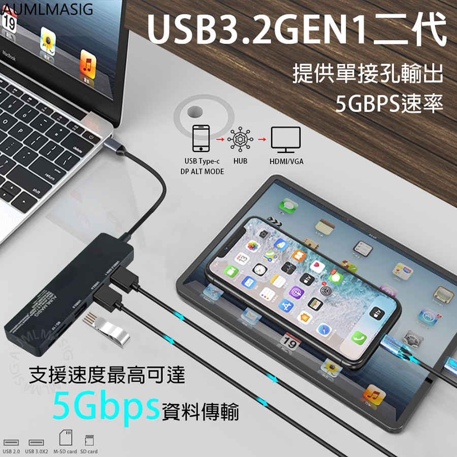 【AUMLMASIG全通碩】5合1 USB-A 3.2USB 5合1擴充隨身集線器 全金屬機身+USB擴充+讀卡