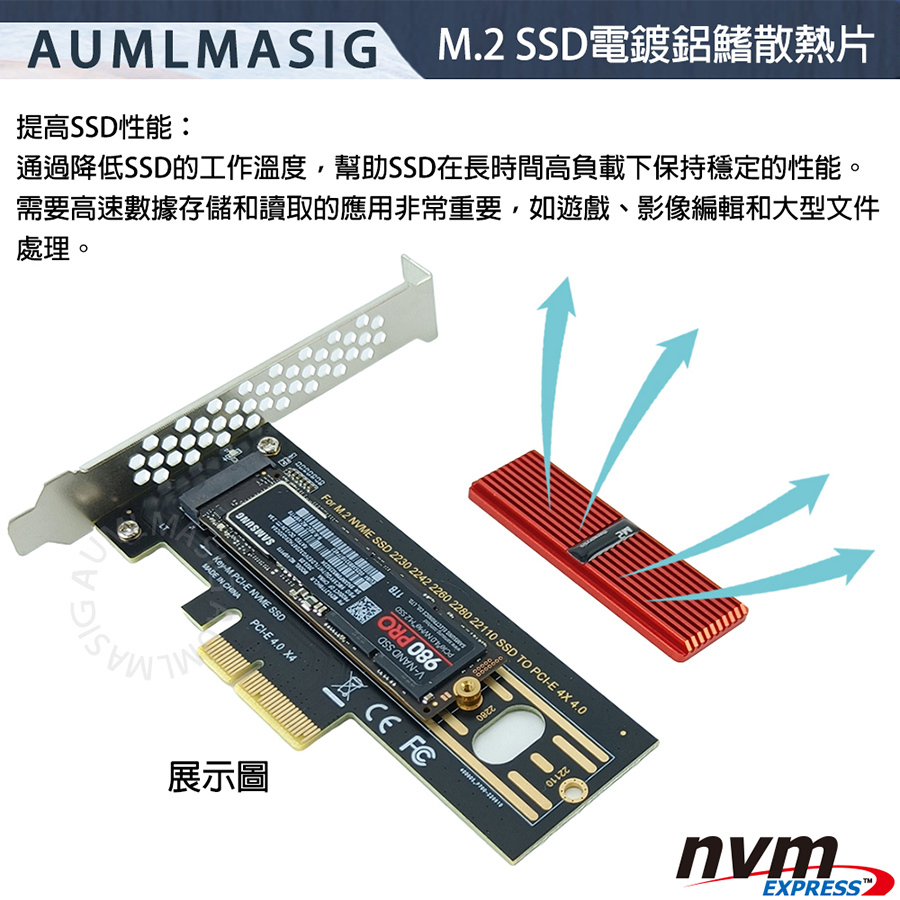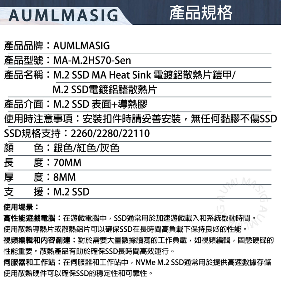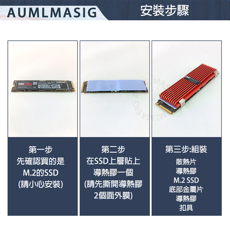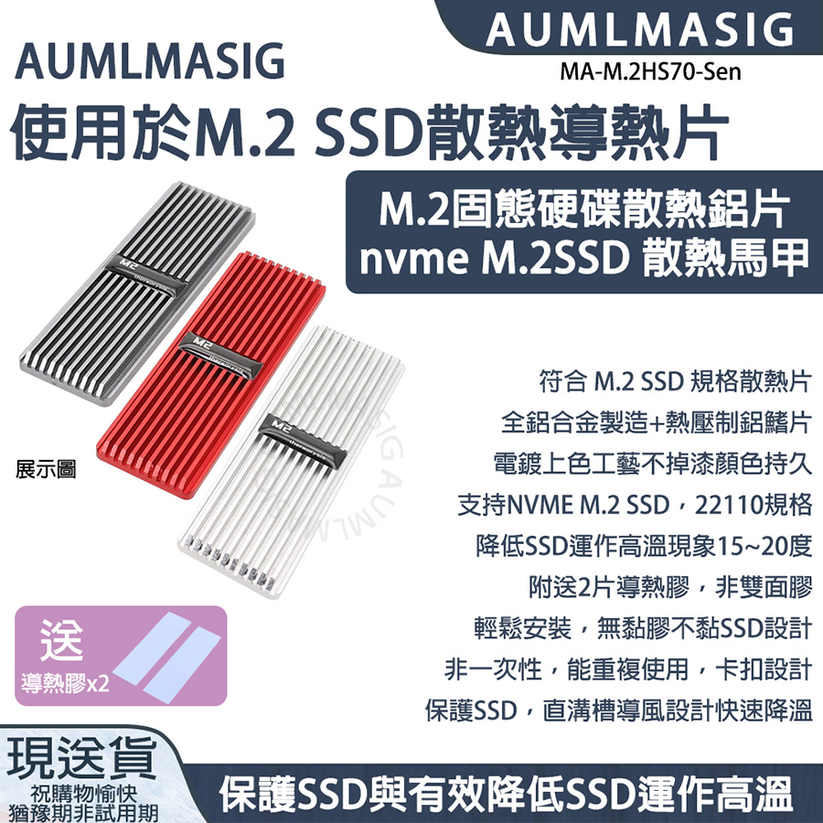 AUMLMASIG M.2 SSD散熱導熱片 M.2固態硬碟散熱鋁片 nvme M.2SSD 散熱馬甲