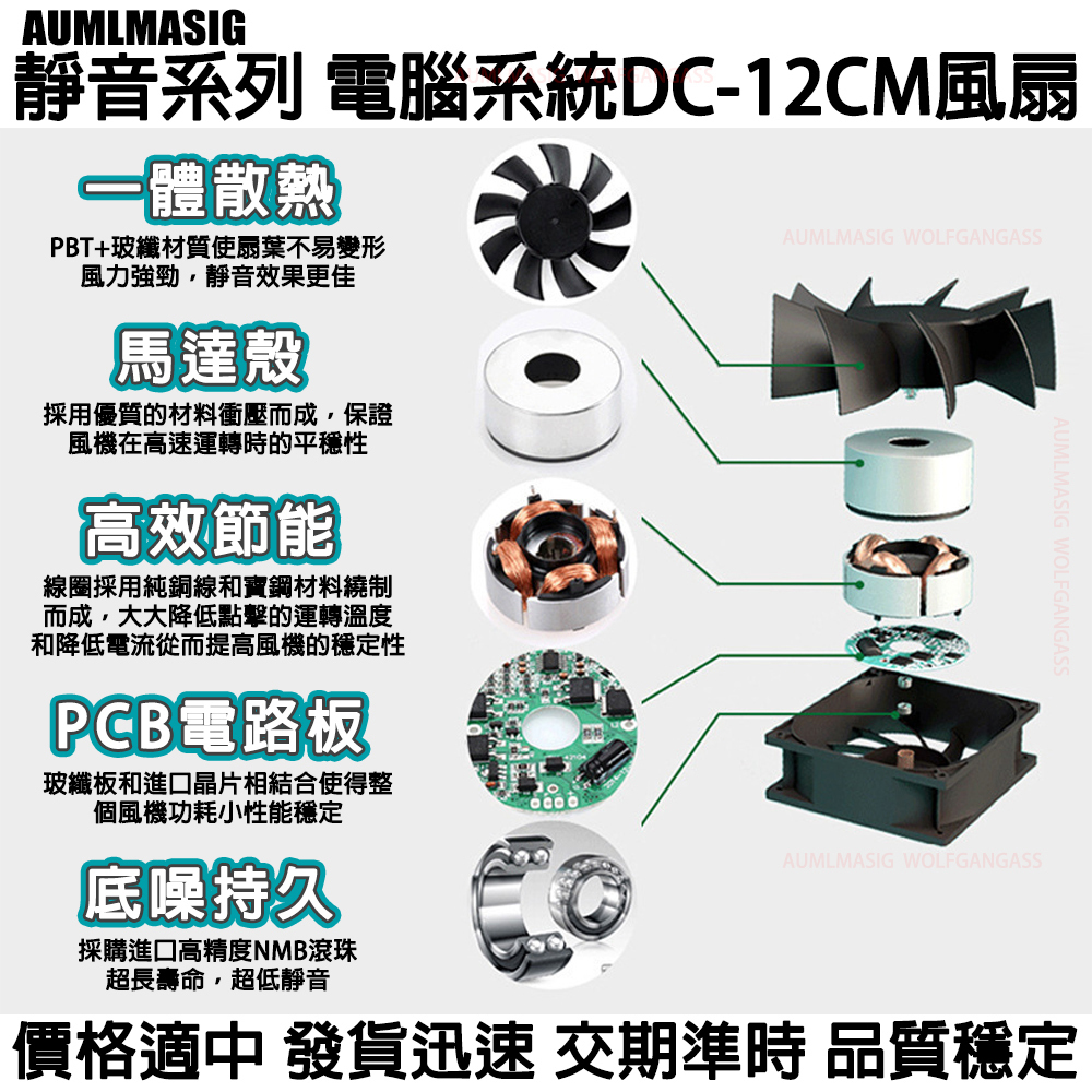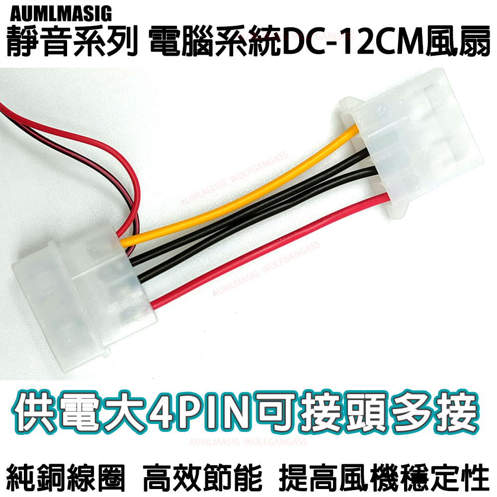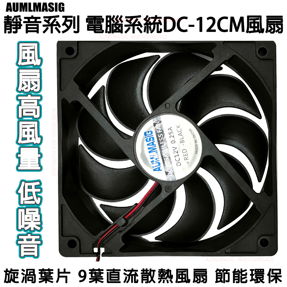 【AUMLMASIG】超靜音-低轉速-低震動-1400RPM電腦系統風扇DC12CM 斜側式旋渦葉片節能機殼 機械硬碟/機殼風扇/適用 大4PIN供電-減少共振