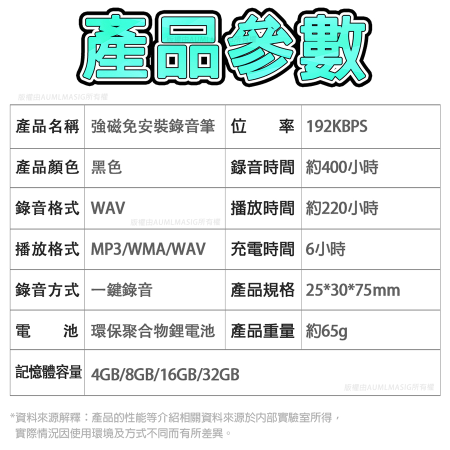 DODO LU 長效型密錄聲控智能錄音筆 一鍵錄音 超長待機 持久續航500小時 聲控錄音 直接聽錄音 磁力吸附功能 一鍵錄音 數位降噪  斷電保存  音樂播放