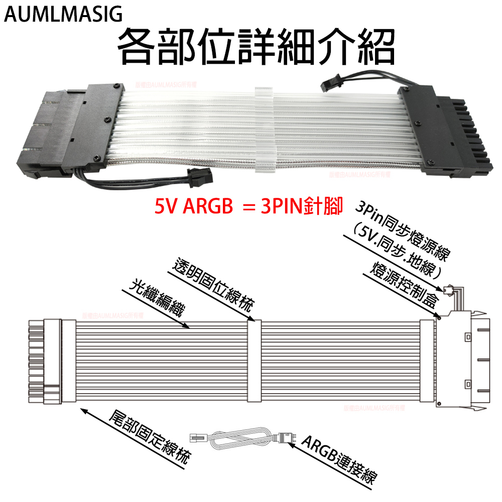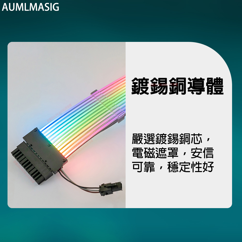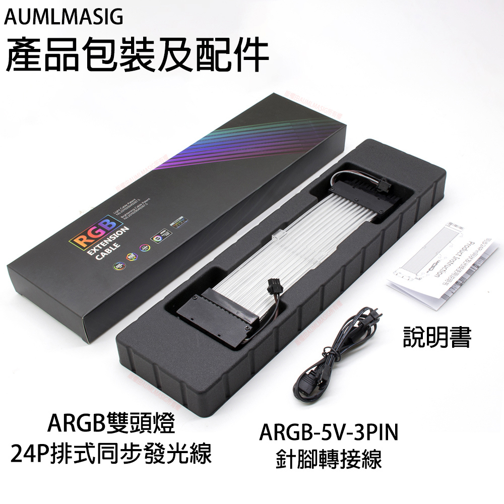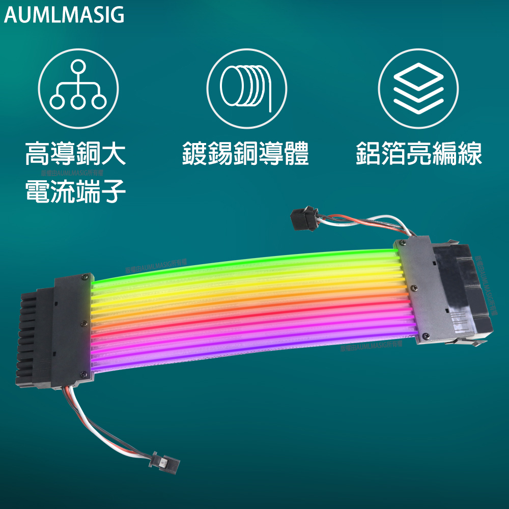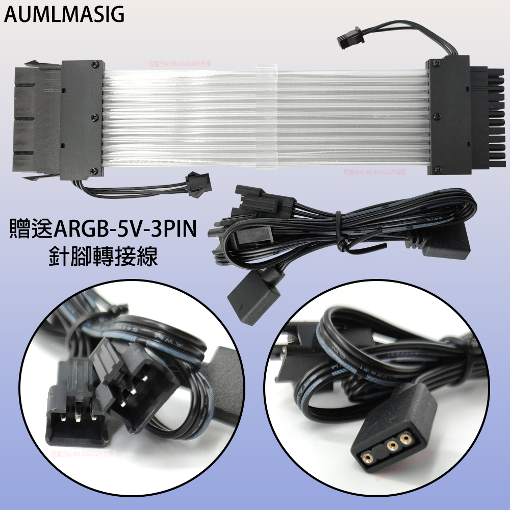 AUMLMASIG【電競首選-直列式】【改裝-2合一ARGB雙向燈24P直列式同步發光線+電源線】主機板-ARGB神光幻彩雙向燈24PIN直列同步發光電源線 / 贈送:同步線一條5V-3PIN-ARGB轉接線