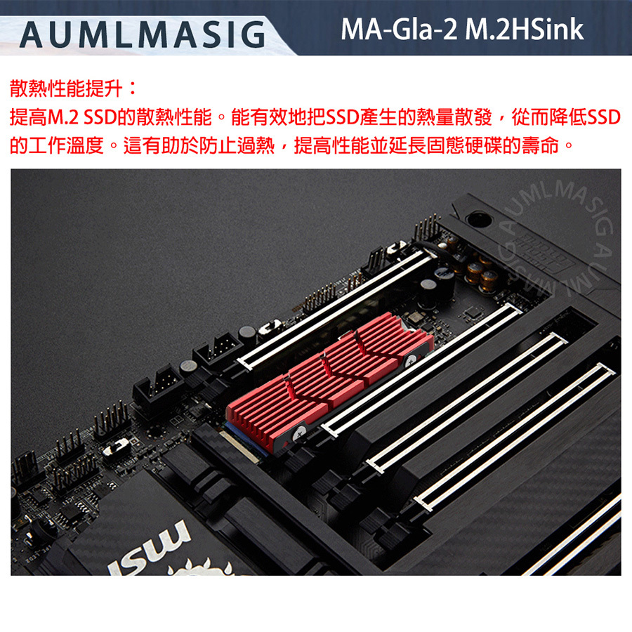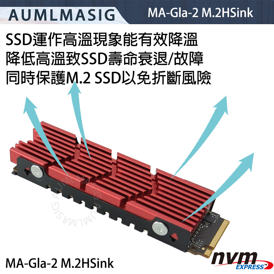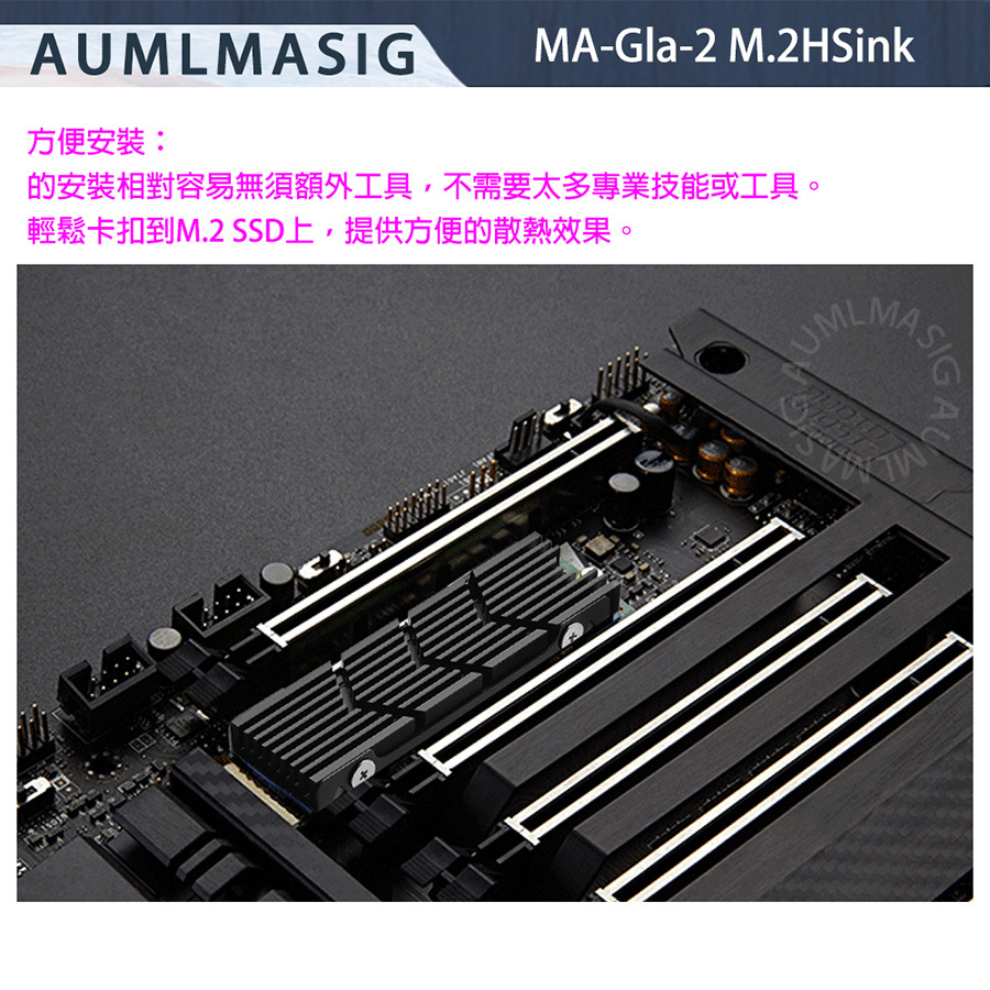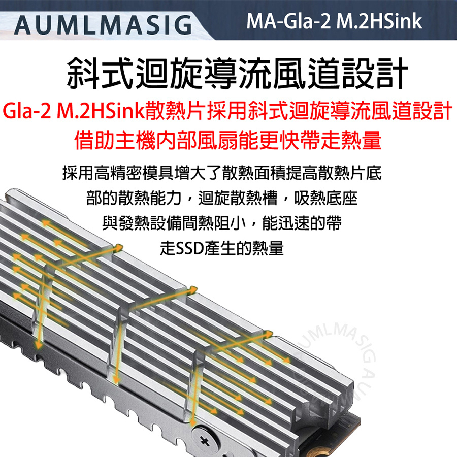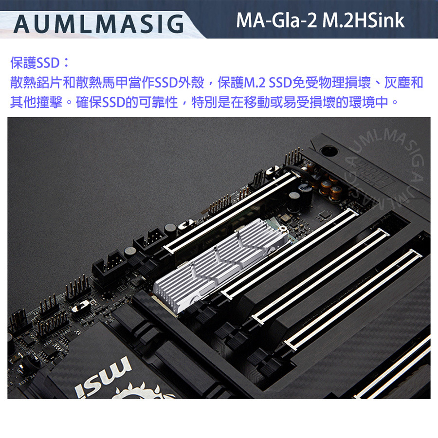 AUMLMASIG Glacier M.2 Pro SSD 全金屬固態硬碟散熱片 MA-Gla-2 M.2Hsink 符合 M.2 SSD 規格散熱片 全鋁合金+熱壓制鋁鰭片 電鍍上色工藝不掉漆顏色持久 .支持NVME M.2 SSD,2280規格