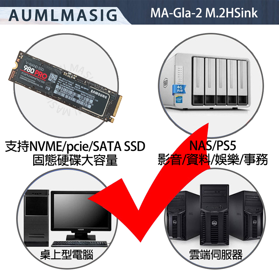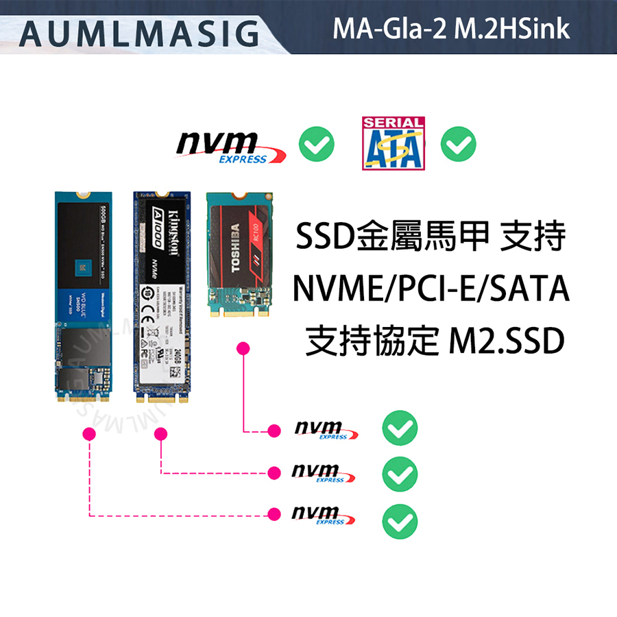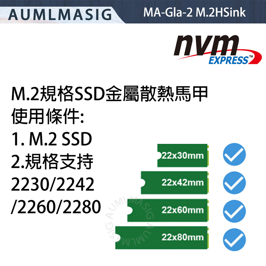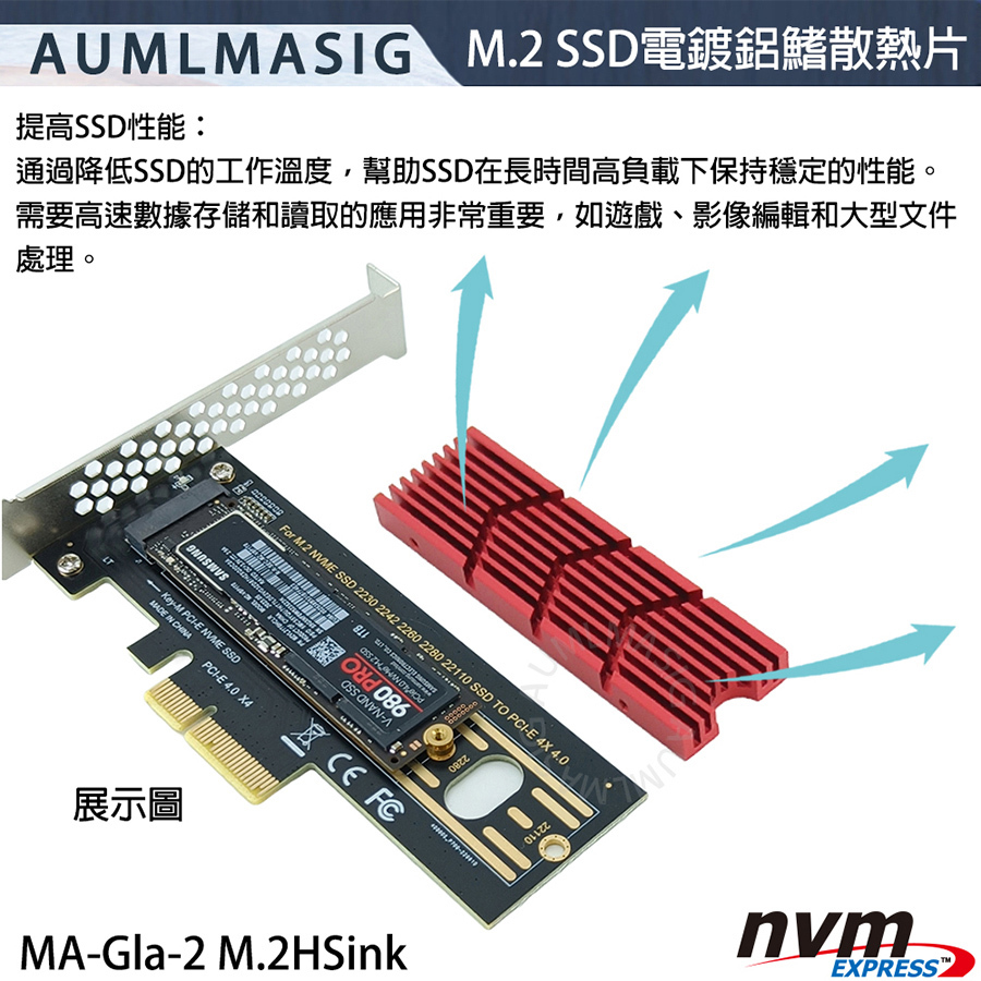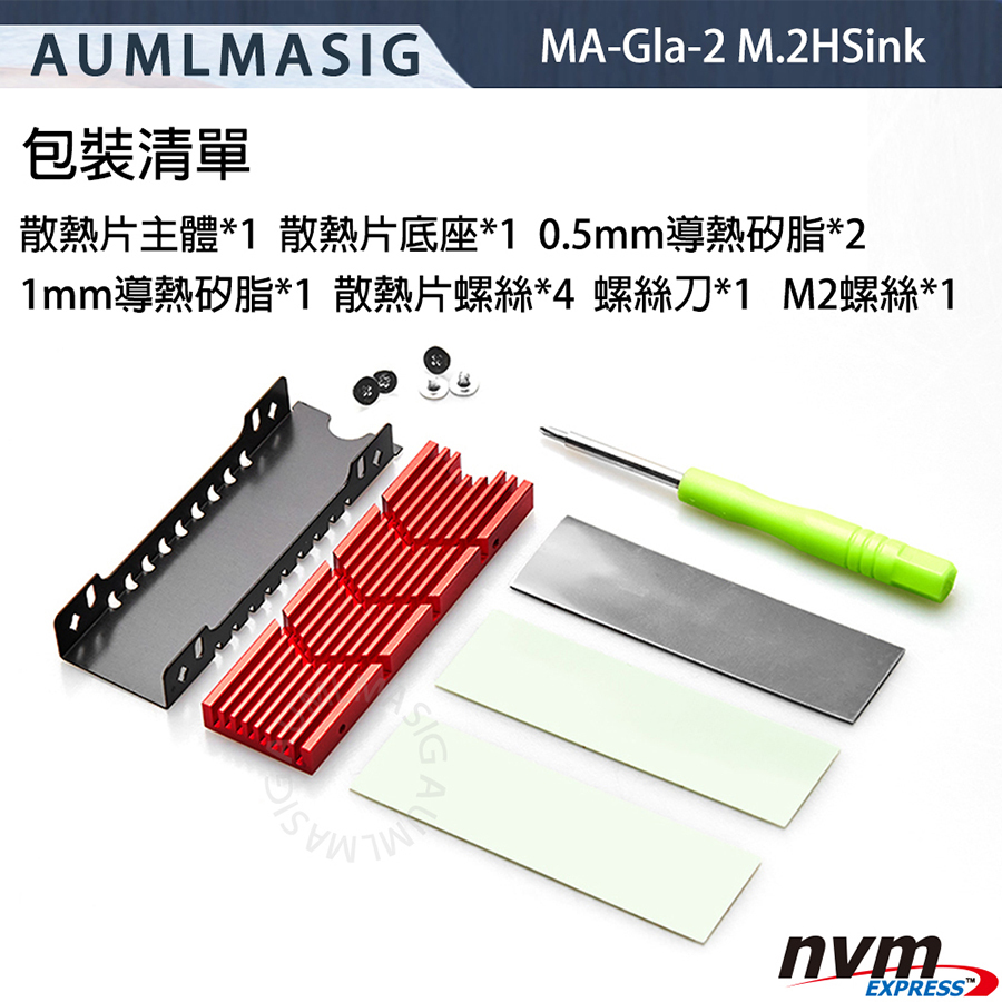 AUMLMASIG Glacier M.2 Pro SSD 全金屬固態硬碟散熱片 MA-Gla-2 M.2Hsink 符合 M.2 SSD 規格散熱片 全鋁合金+熱壓制鋁鰭片 電鍍上色工藝不掉漆顏色持久 .支持NVME M.2 SSD,2280規格
